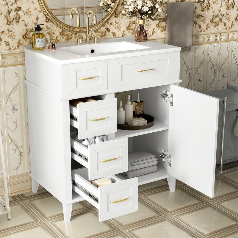 30" Freestanding Bathroom Vanity with Ceramic Sink – Featuring Vertical Pulls, Full-Extension Drawers & Soft-Close Slides .