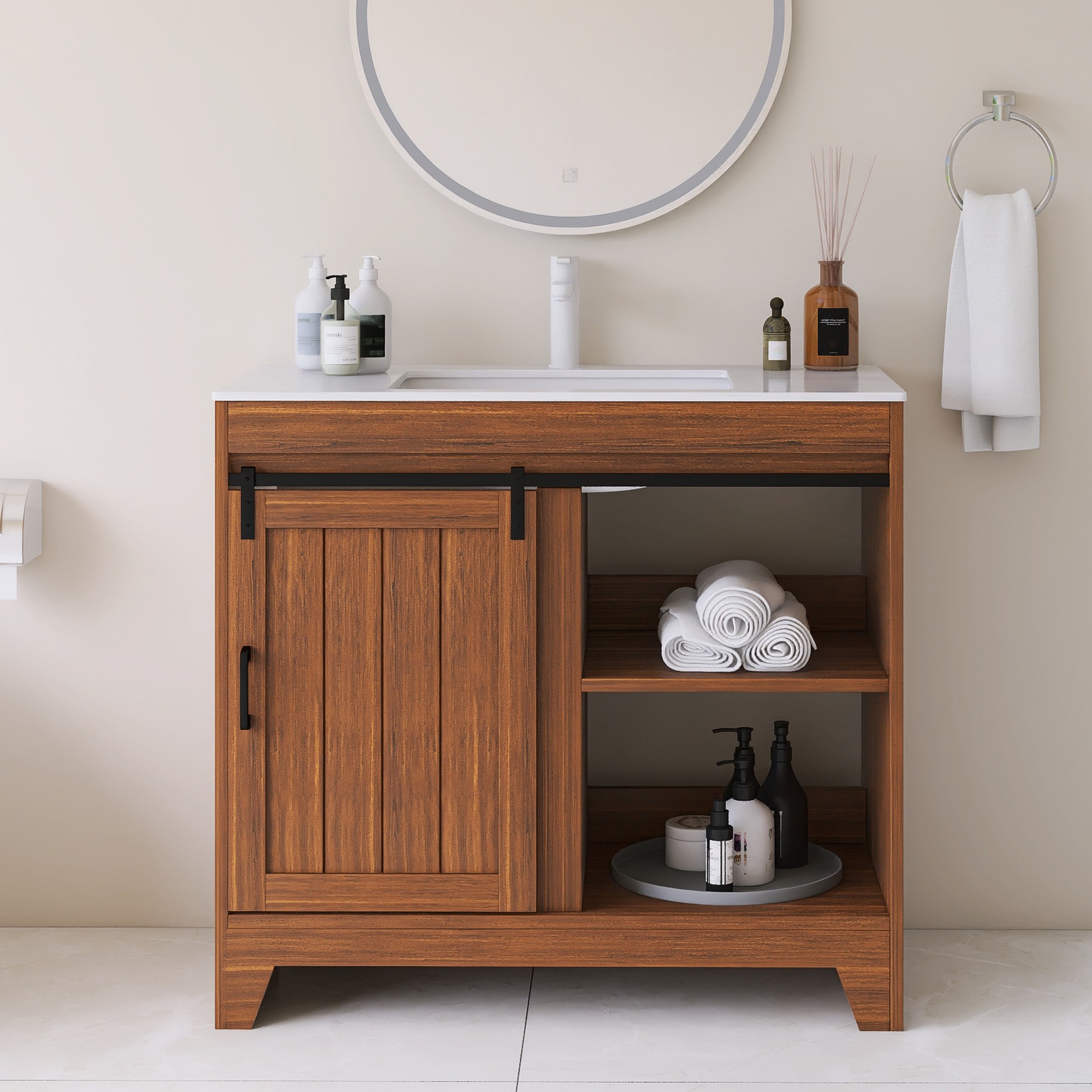 35.8" Freestanding Bathroom Vanity with Ceramic Sink - 35.83'' x 18.9'' x 33.46''