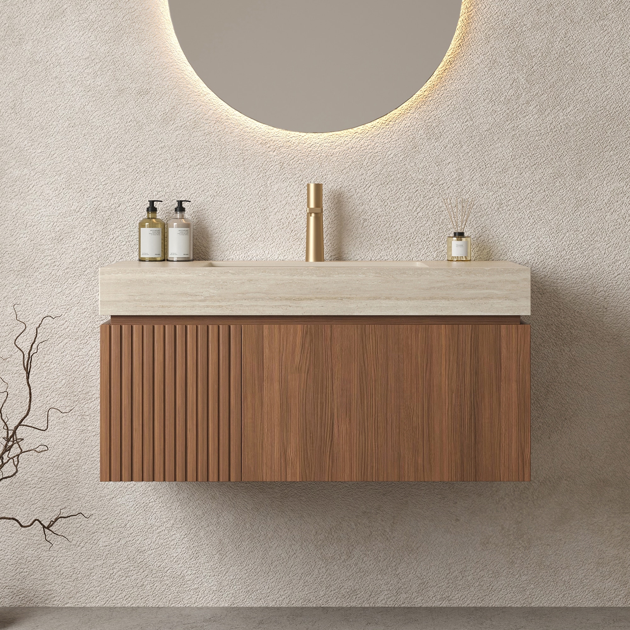 30"/36"/48" Wall-Mounted Bathroom Vanity with Ceramic Sink, Sintered Stone Countertop Floating Bathroom Storage Cabinet
