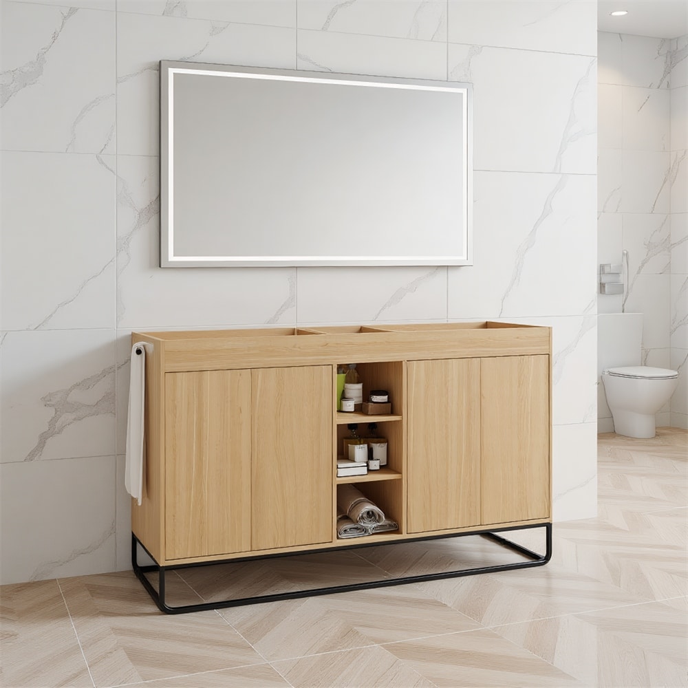 60" Freestanding Bathroom Cabinet,4-Soft Close Door (Without Sink)