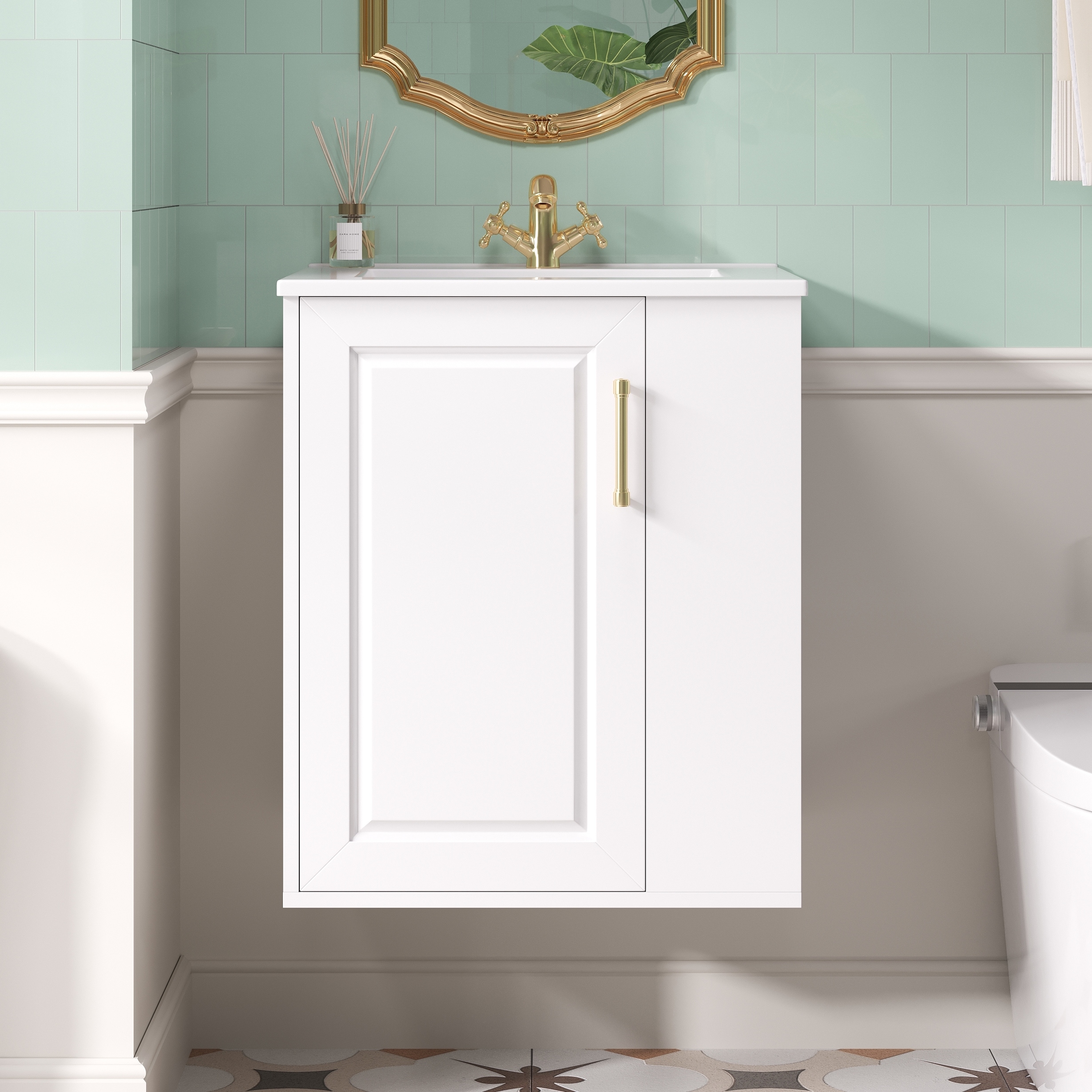 Wall-Mounted Bathroom Vanity with White Ceramic Sink