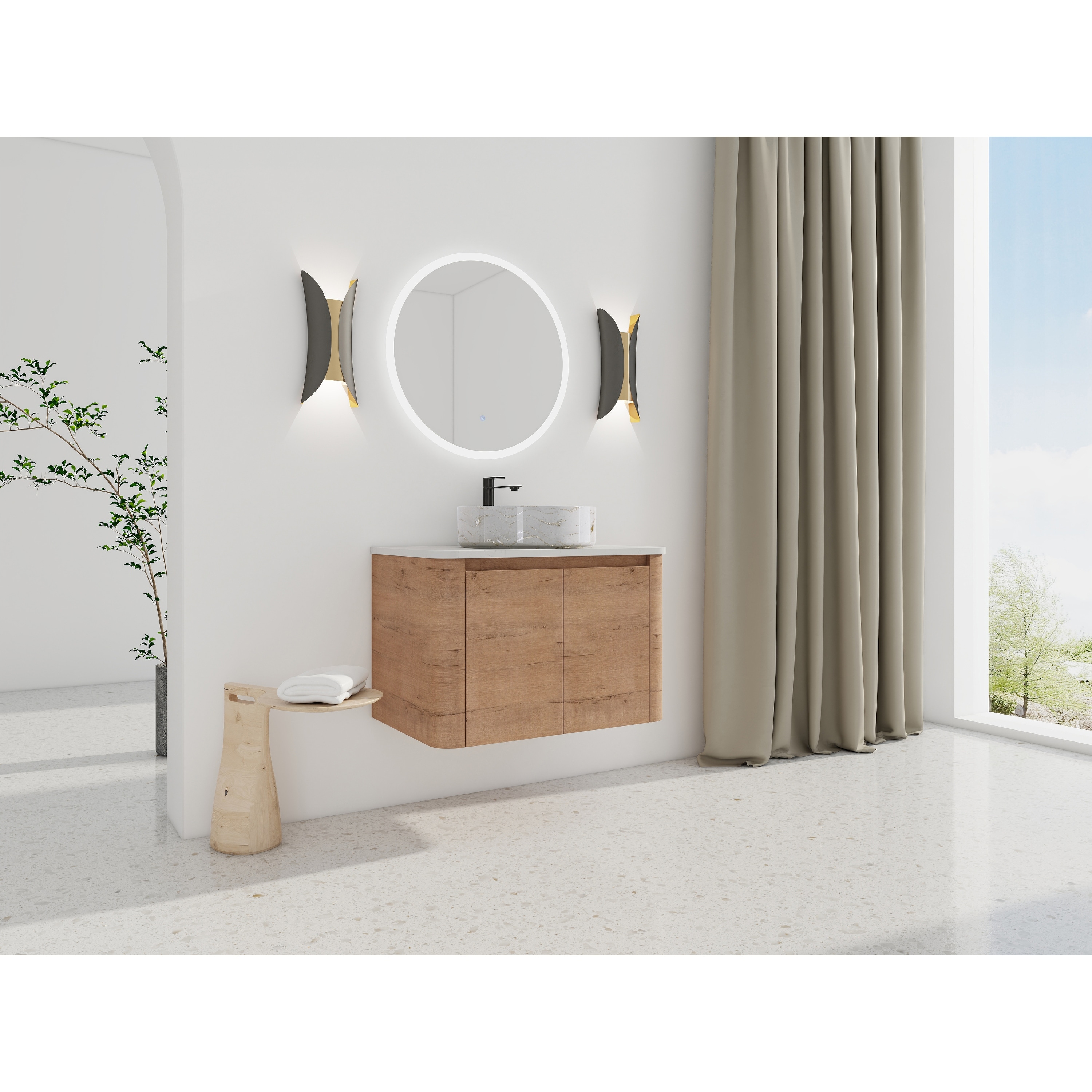 Wall-Mounted Bathroom Vanity With Ceramic Art Sink and 2-Soft-Close Door