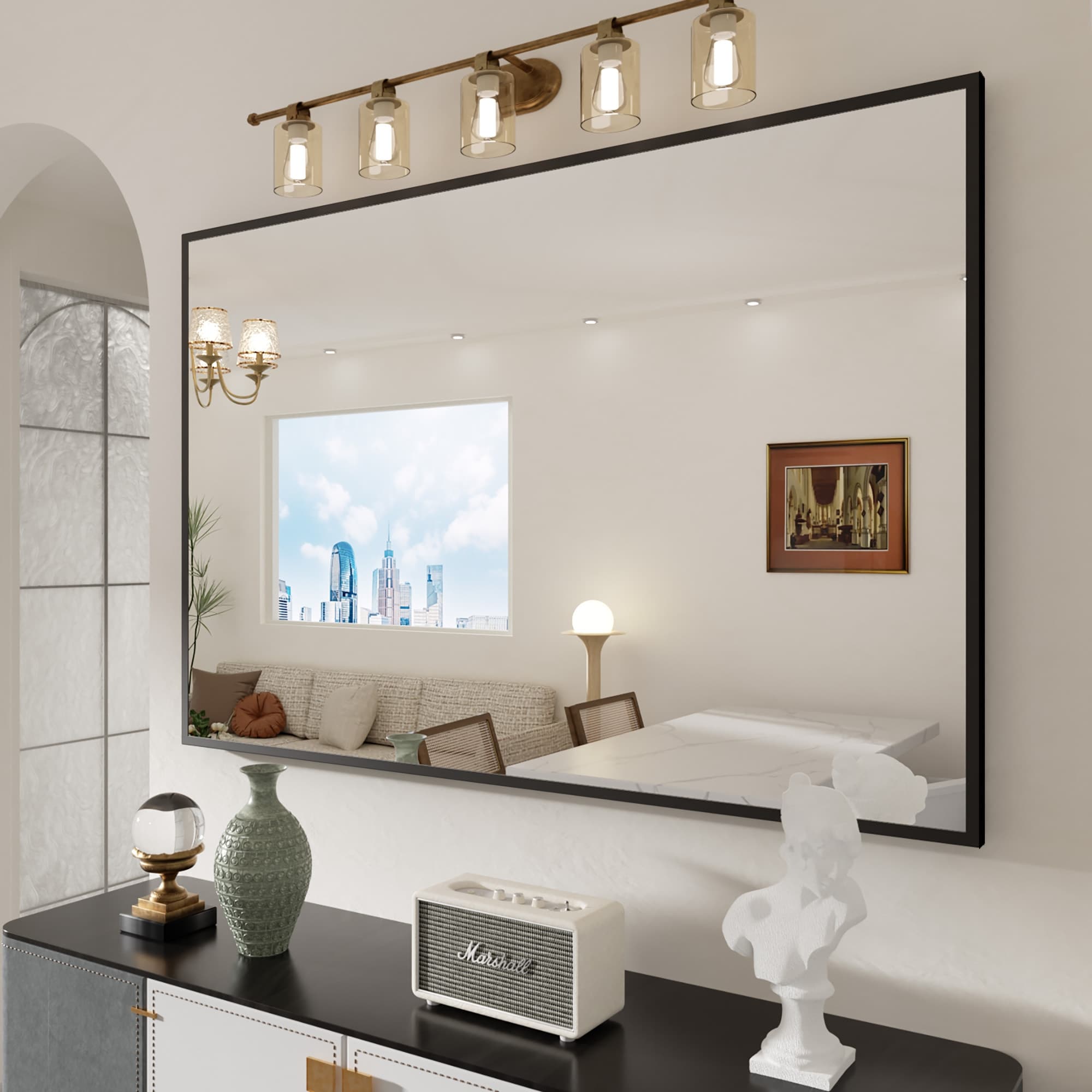Oversized Modern Rectangle Bathroom Mirror with Balck Frame Decorative Large Wall Mirrors