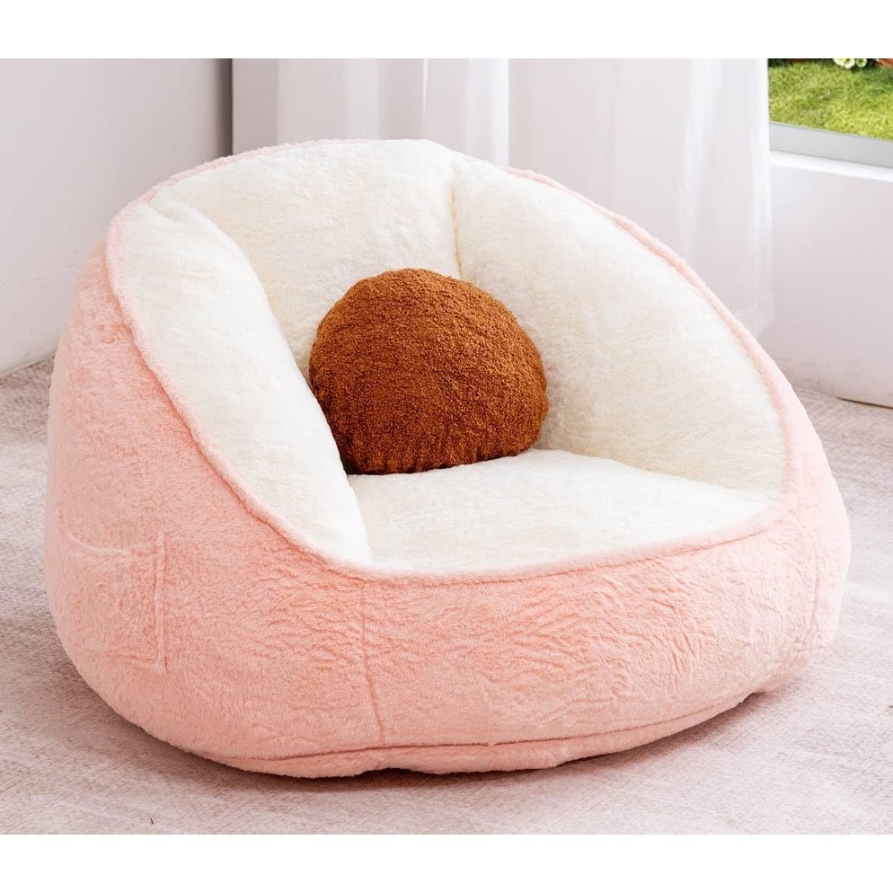 Cozy Faux Fur Bean Bag Chair with Back Support for Adults, Teens, Kids - Perfect for Living Room, Bedroom, Dorm - Peach Pink