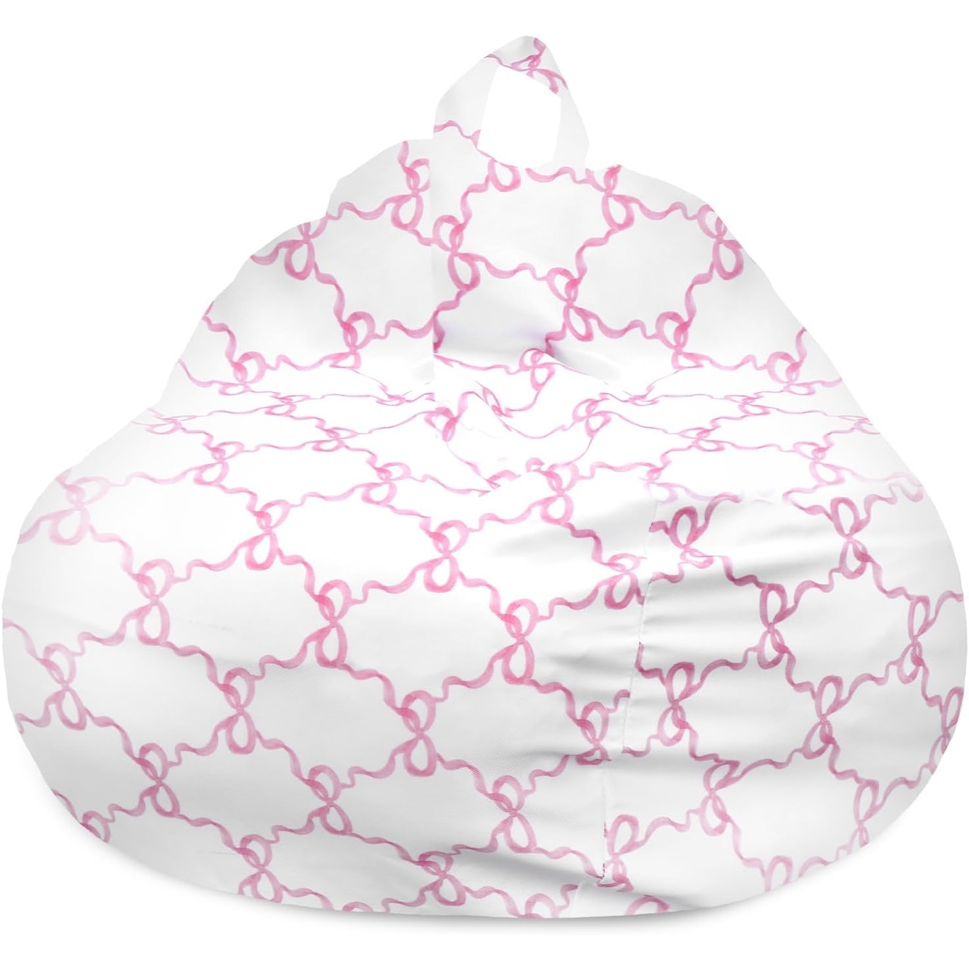 Stuffed Animal Storage Bean Bag Chair Cover, Polyester Stuffable for Kids, Plush Toy & Clothes Organizer (Pink Bow)