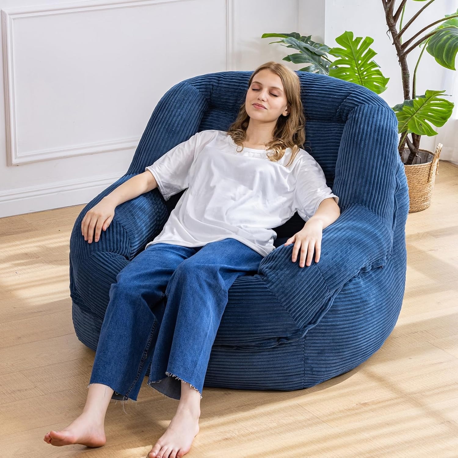 Oversized Bean Bag Chair with Armrests - Cozy Corduroy Lounge for Living Room, Bedroom & Gaming (Royal Blue)