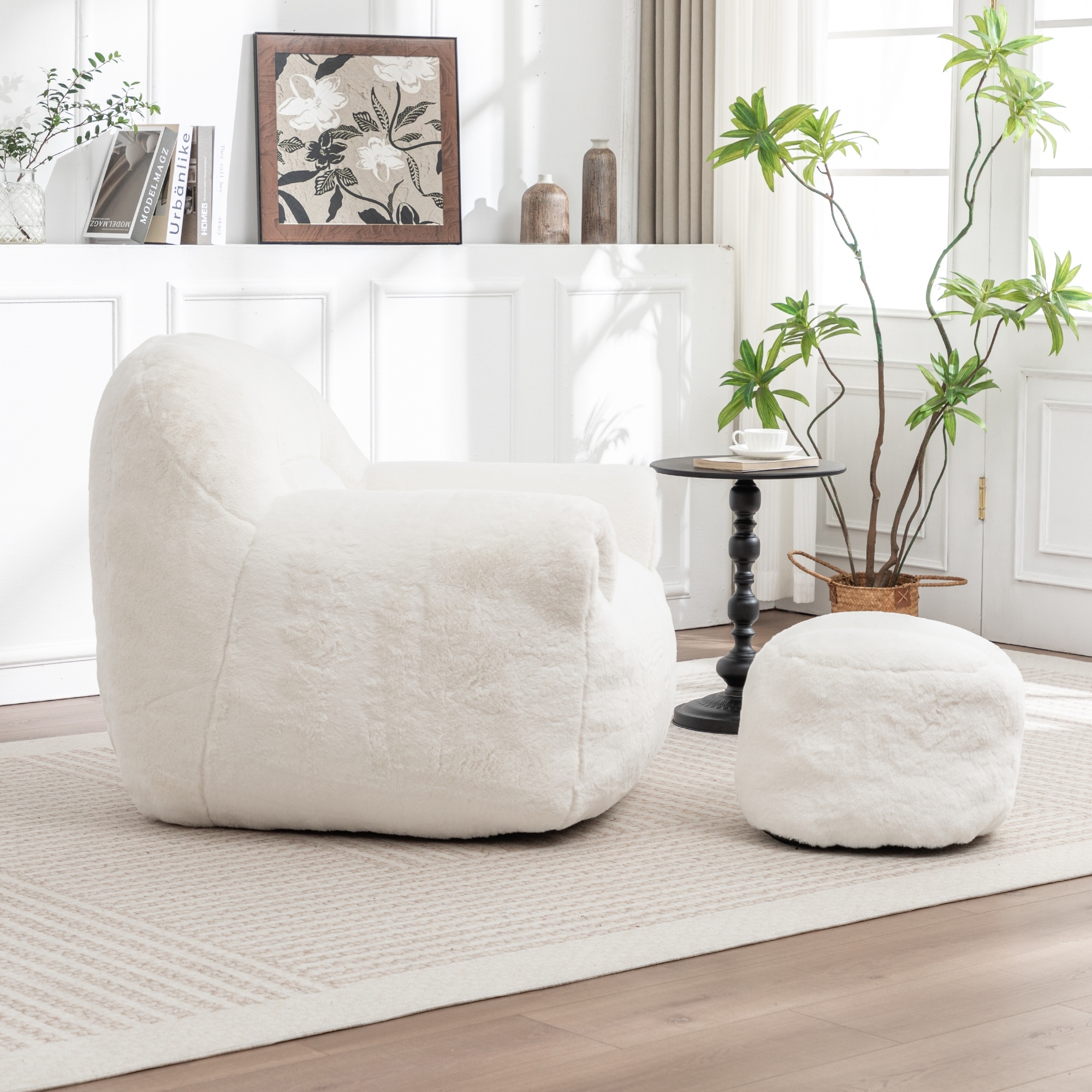 Fluffy Bean Bag Chair with Memory Foam and Ottoman for Living room, Bedroom