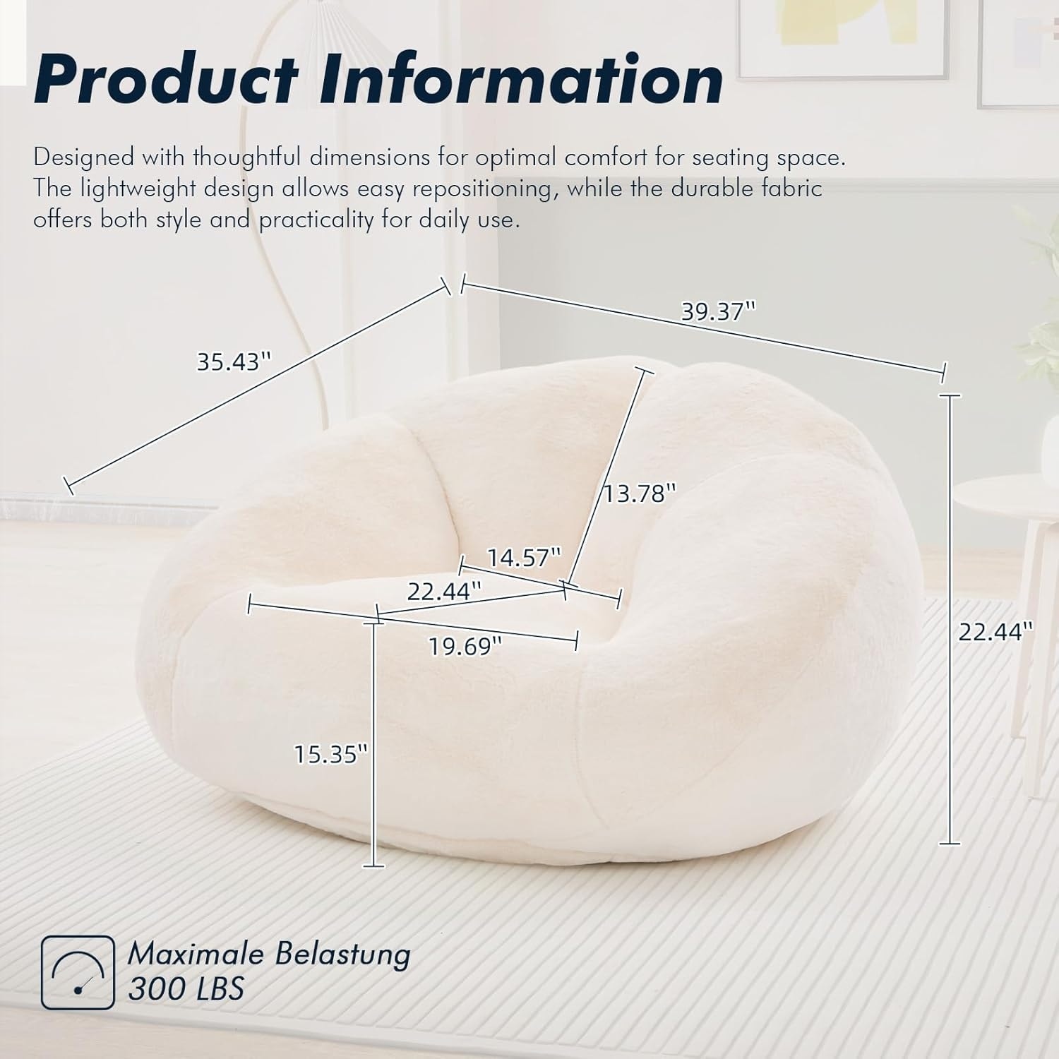 3.28 Ft Shell-Shaped Bean Bag Chair, Faux Fur Lounge Sofa for Reading, Gaming, Watching - Beige