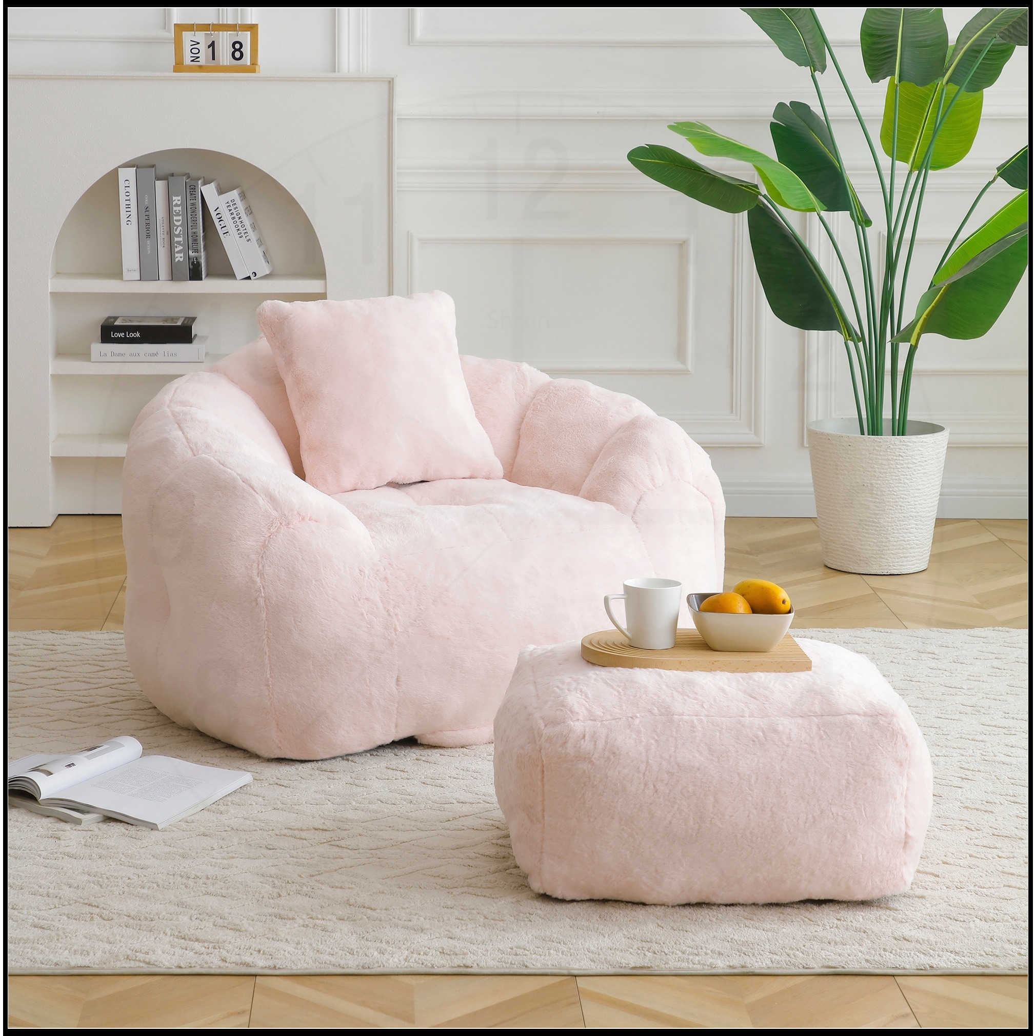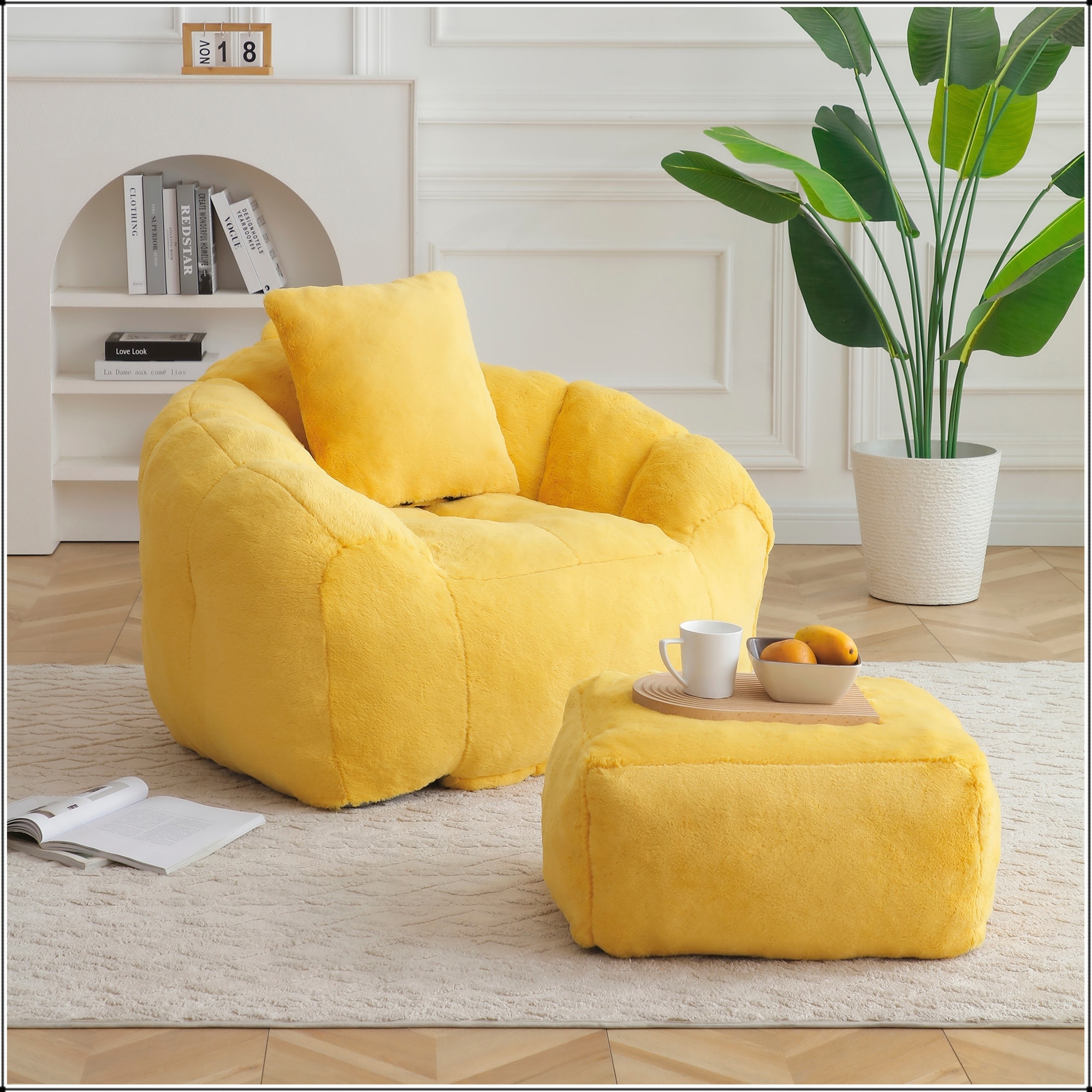 Fluffy Bean Bag Chair with Memory Foam & Ottoman