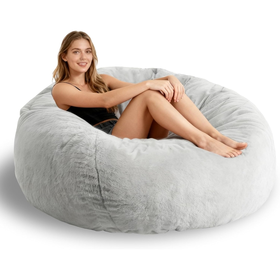 Cozy Faux Fur Bean Bag Cover - Soft Fluffy Storage Seat for Living Room or Bedroom, Light Gray
