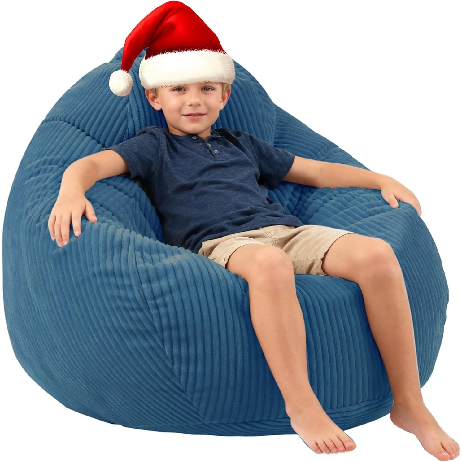 Bean Bag Chair with Memory Foam, Soft Corduroy Fabric for Kids, Teens, Dorm, Living Room, Bedroom - Blue