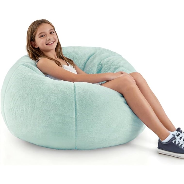 Fluffy Faux Fur Bean Bag Chair for Adults - Comfy High-Density Foam Filled Sofa for Reading or Gaming (Grey)