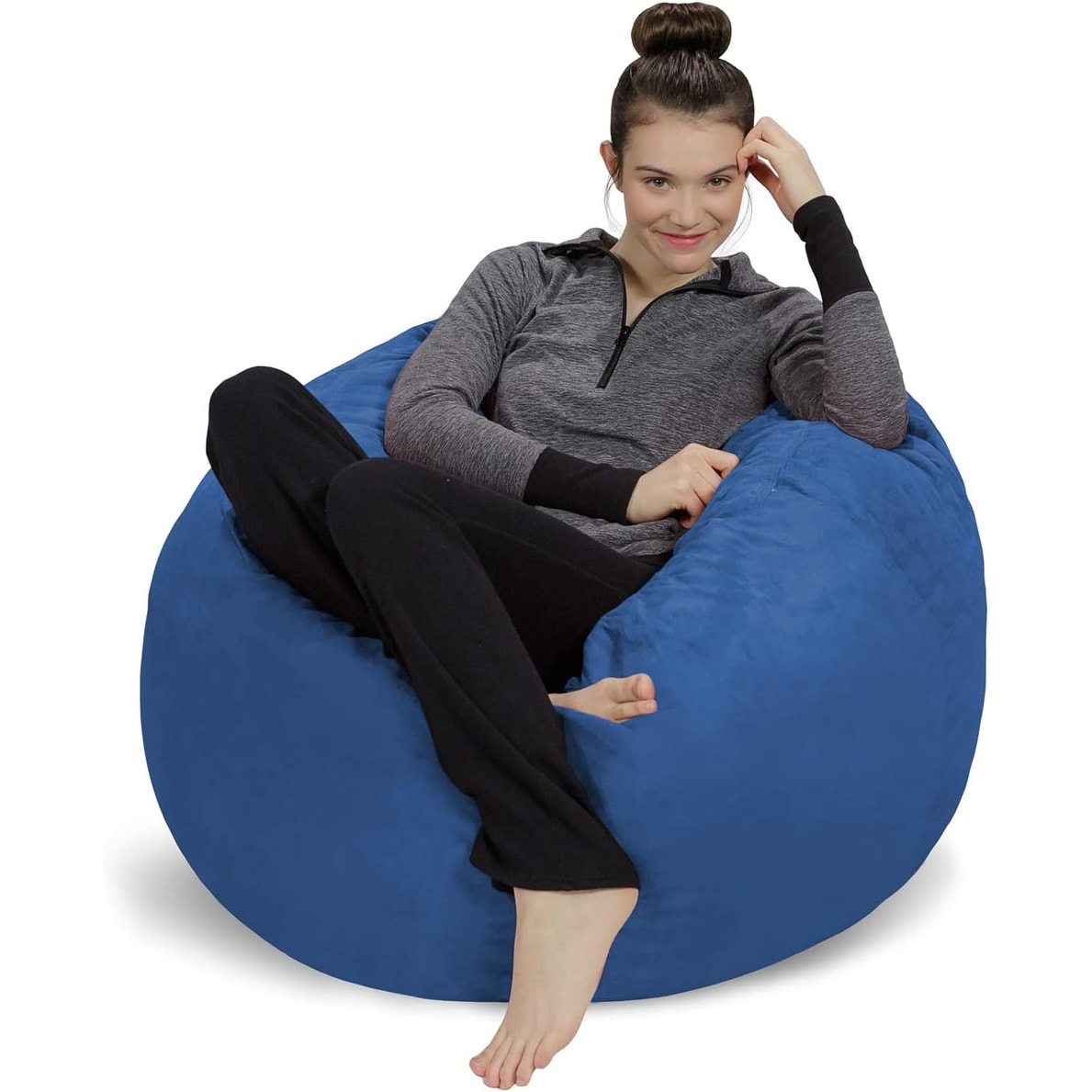 Plush Ultra Soft Memory Foam Bean Bag Chair with Microsuede Cover - 3 Feet, French Blue