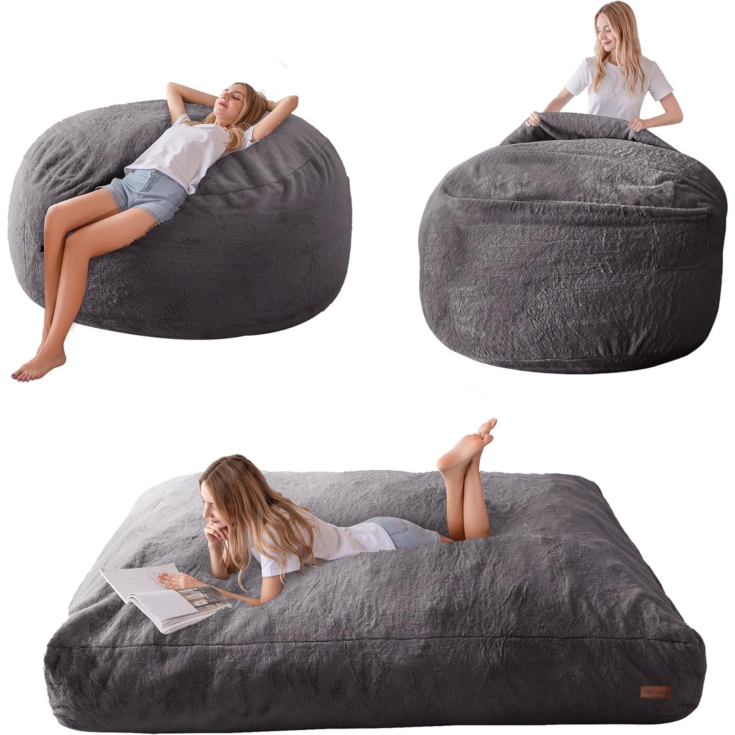 3-in-1 Convertible Bean Bag Floor Cushion with Washable Cover for Living Room, Bedroom - Grey