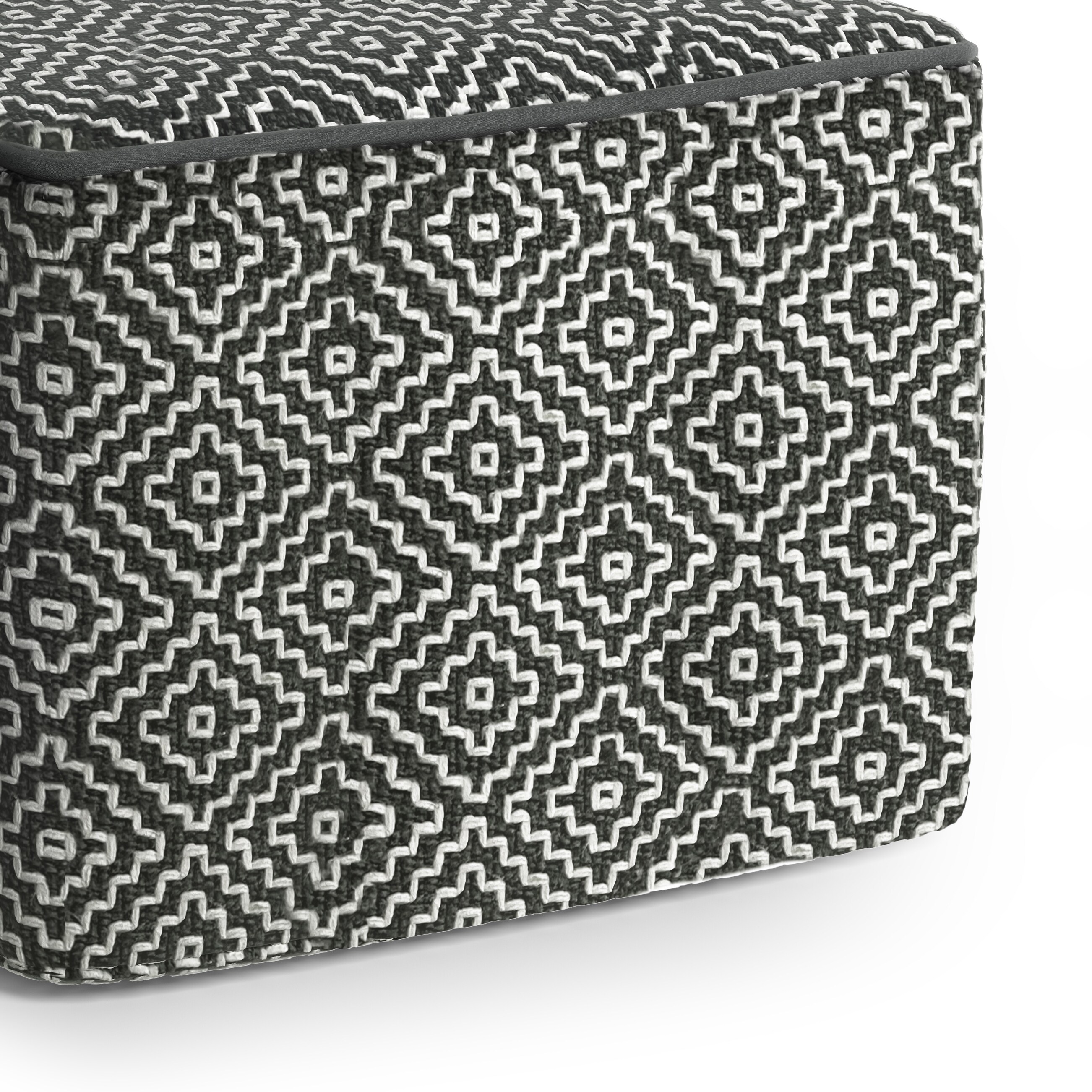 Macie - Square Woven Outdoor / Indoor Pouf - Grey / White