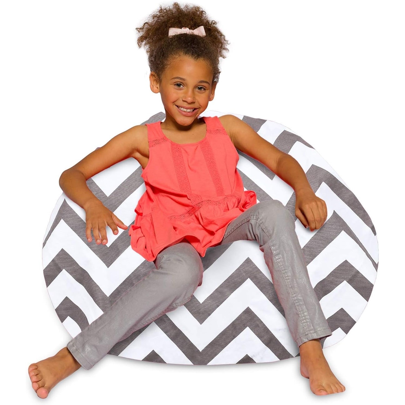 Beanbags Bean Bag Chair, Large-38in, Canvas Chevron Gray and White