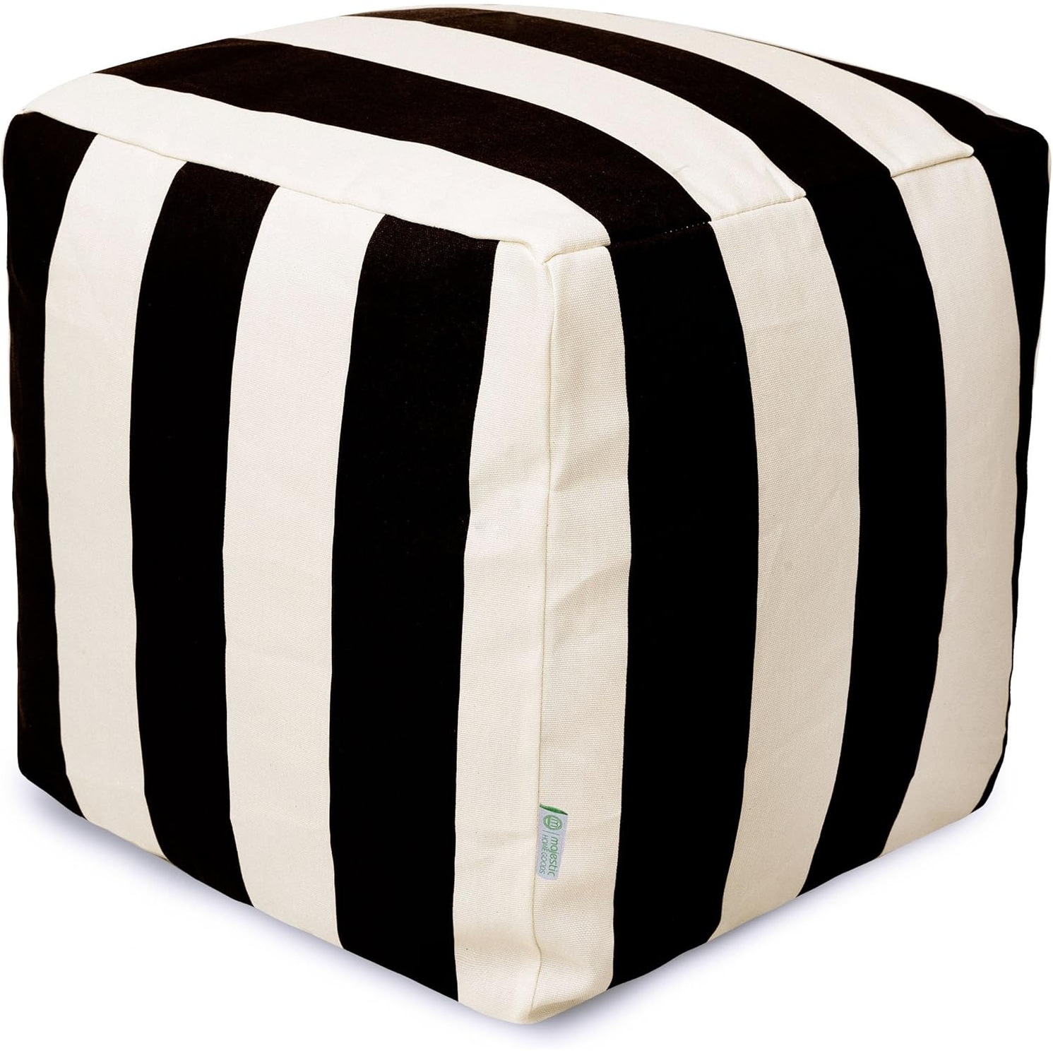 Vertical Stripe Indoor/Outdoor Pouf Ottoman, 17x17x17 Inches - Bean Bag Floor Cushion for Foot Rest or Seating - Black