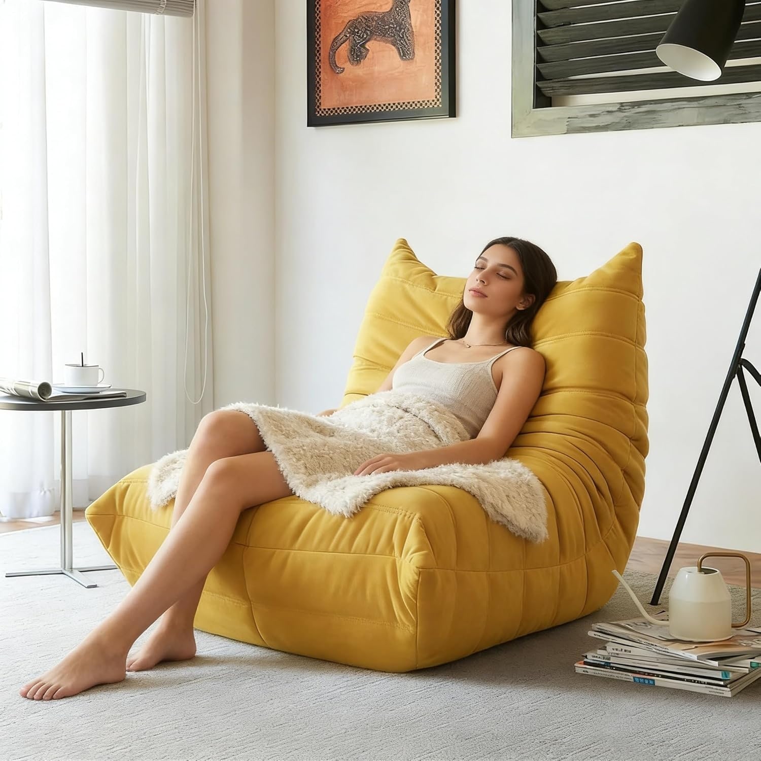 Large Bean Bag Chair for Adults - Corner Sofa, Floor Couch for Living Room, Bedroom, Gaming & Office (Yellow)