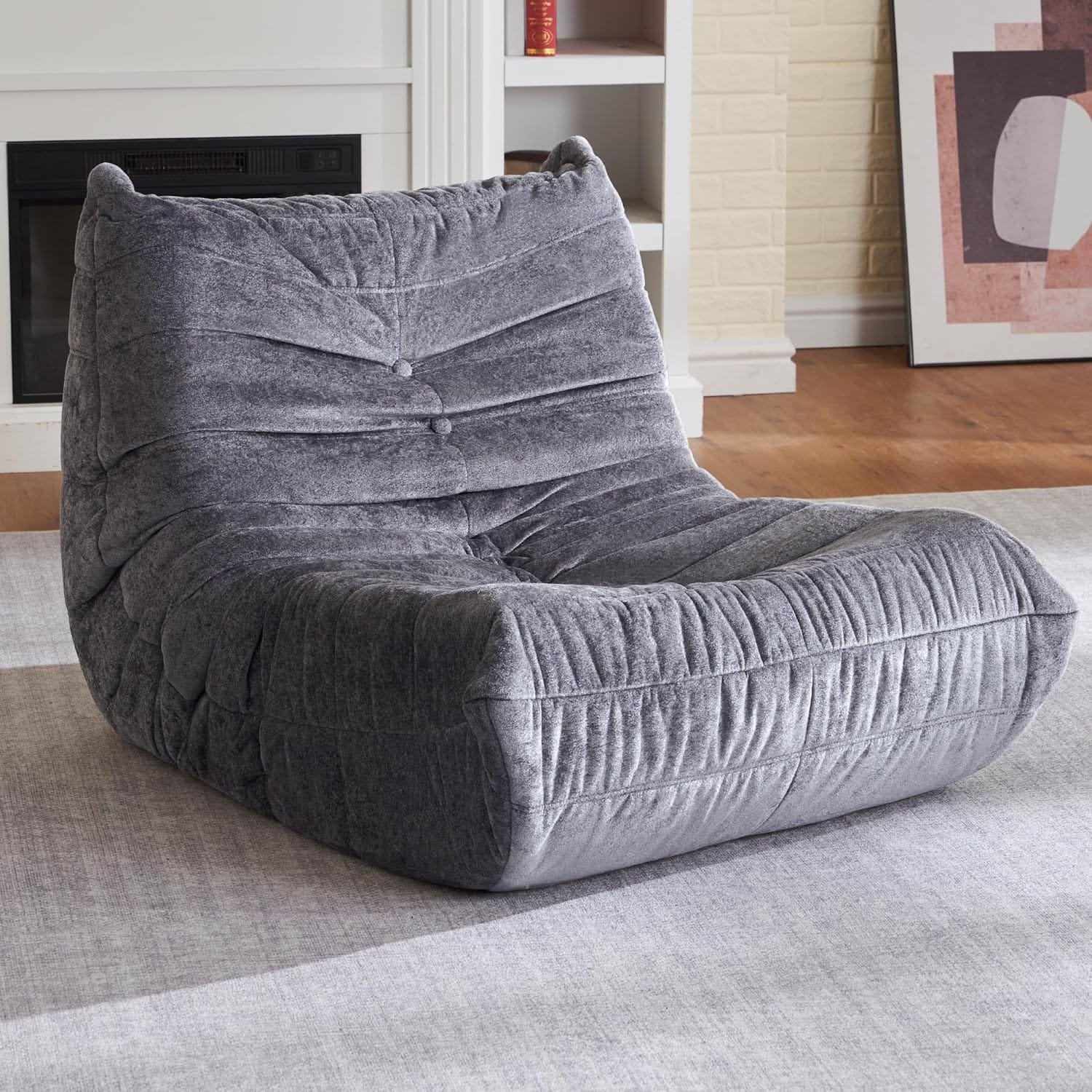 Giant Bean Bag Chair with Filler, Faux Fur Memory Foam Sofa for Living Room, Bedroom or Office - Grey