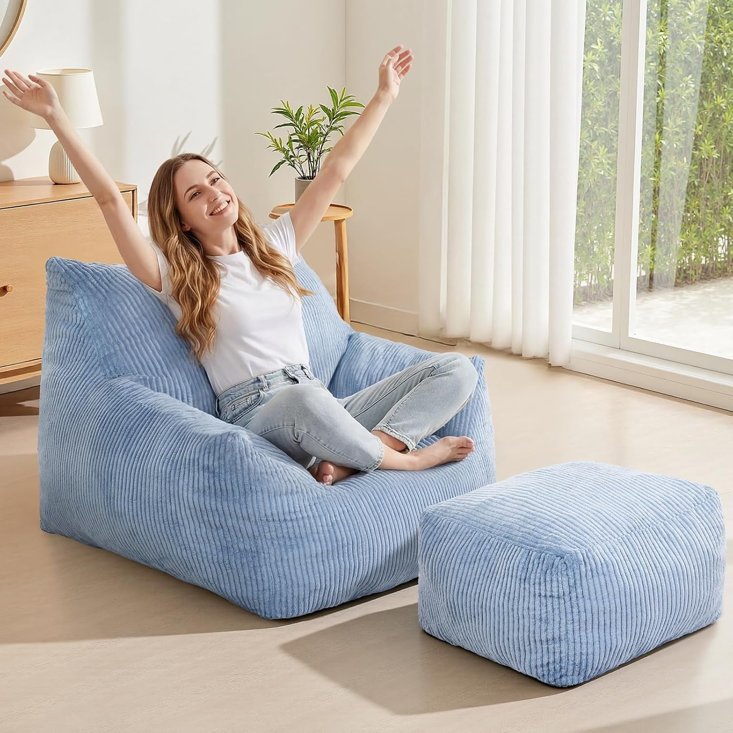 Big Bean Bag Lounger Chairs Large Beanbag Chair for Adults Bean Bag Sofa with Memory Foam Filled and Ottoman, for Apartment