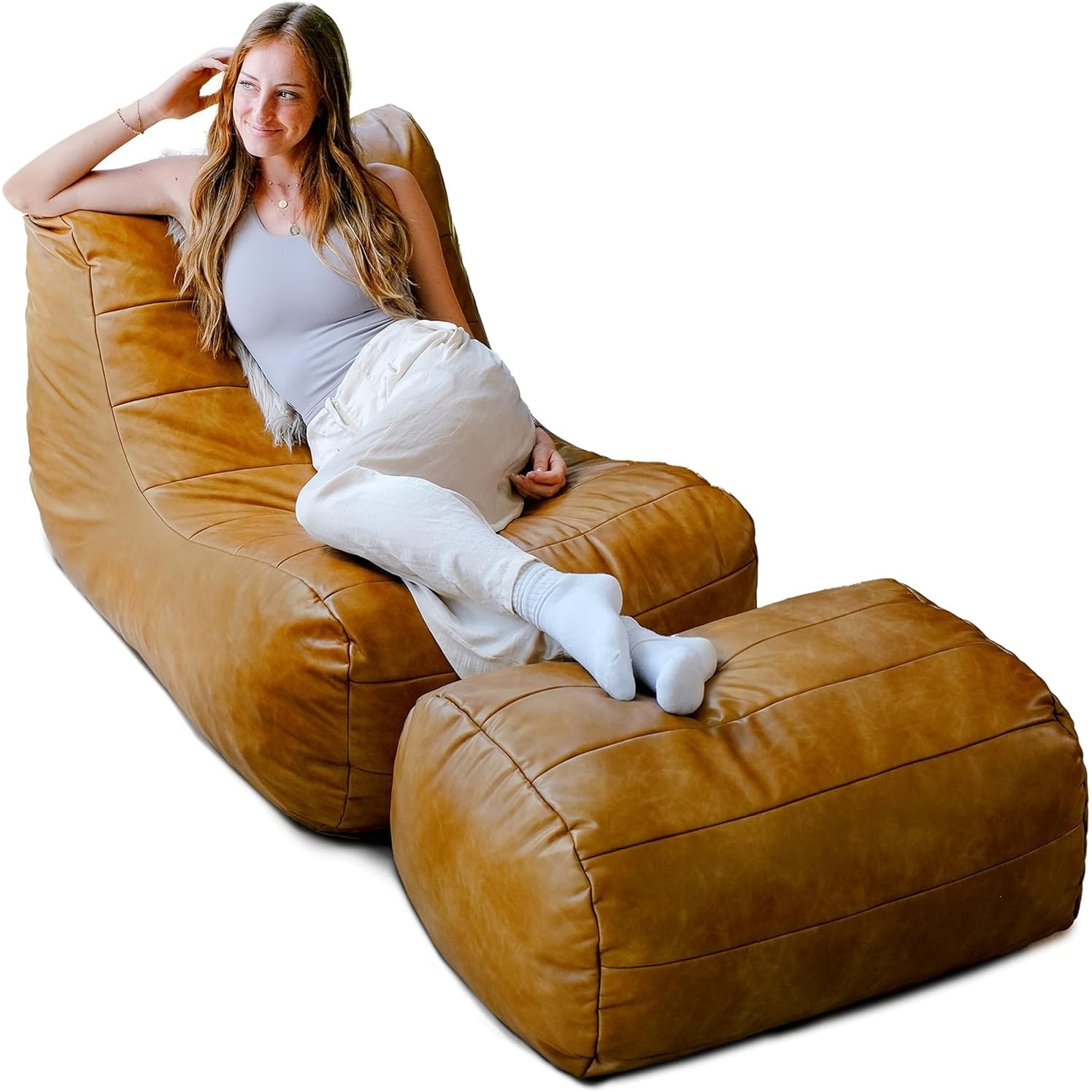 Bean Bag Lounger and Ottoman Set for Adults, Living Room Gaming Chair