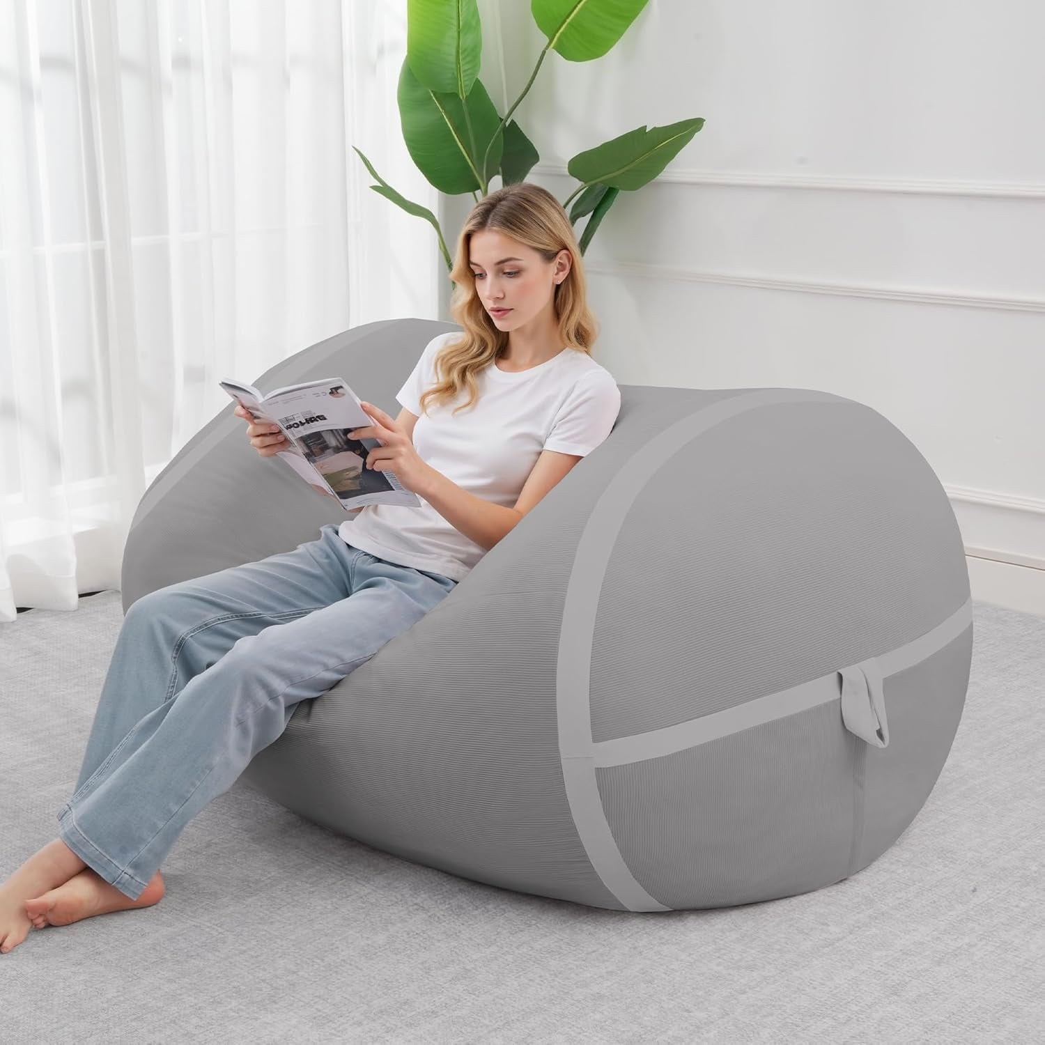 Comfy High-Density Foam Bean Bag Chair - Soft Dutch Velvet, Multi-Use for Living Room, Bedroom, Dorm, Reading & Gaming (Grey)