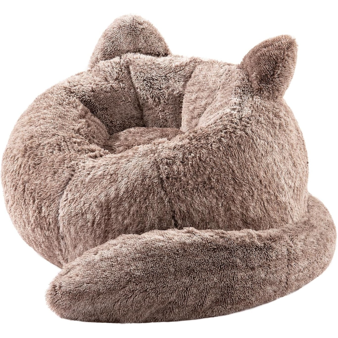 Giant Faux Fur Bean Bag Chair for Adults, Teens, Kids - Fluffy Cat-Shaped Floor Sofa for Gaming, Reading