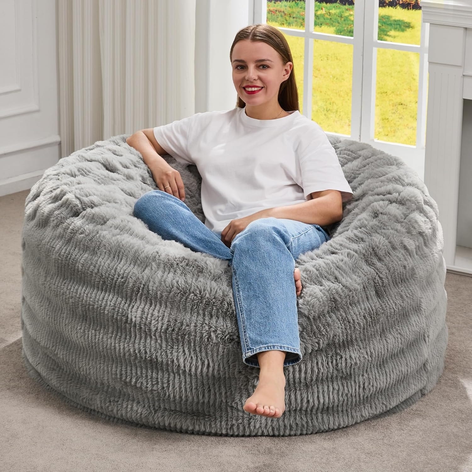 Giant Bean Bag Chair with Fluffy Ripple Cover for Adults (Grey, 3FT)