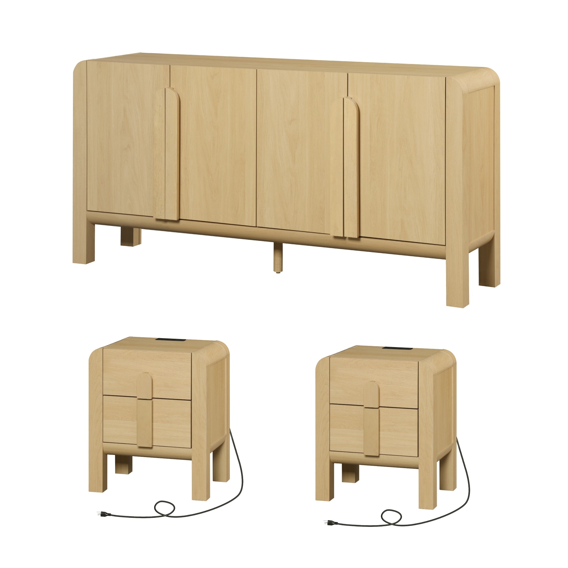 WAMPAT 3 Pcs Bedroom Set,Mid Century Dresser And Nightstand Sets For Bedroom, Night Stand Set Of 2, Modern Dresser