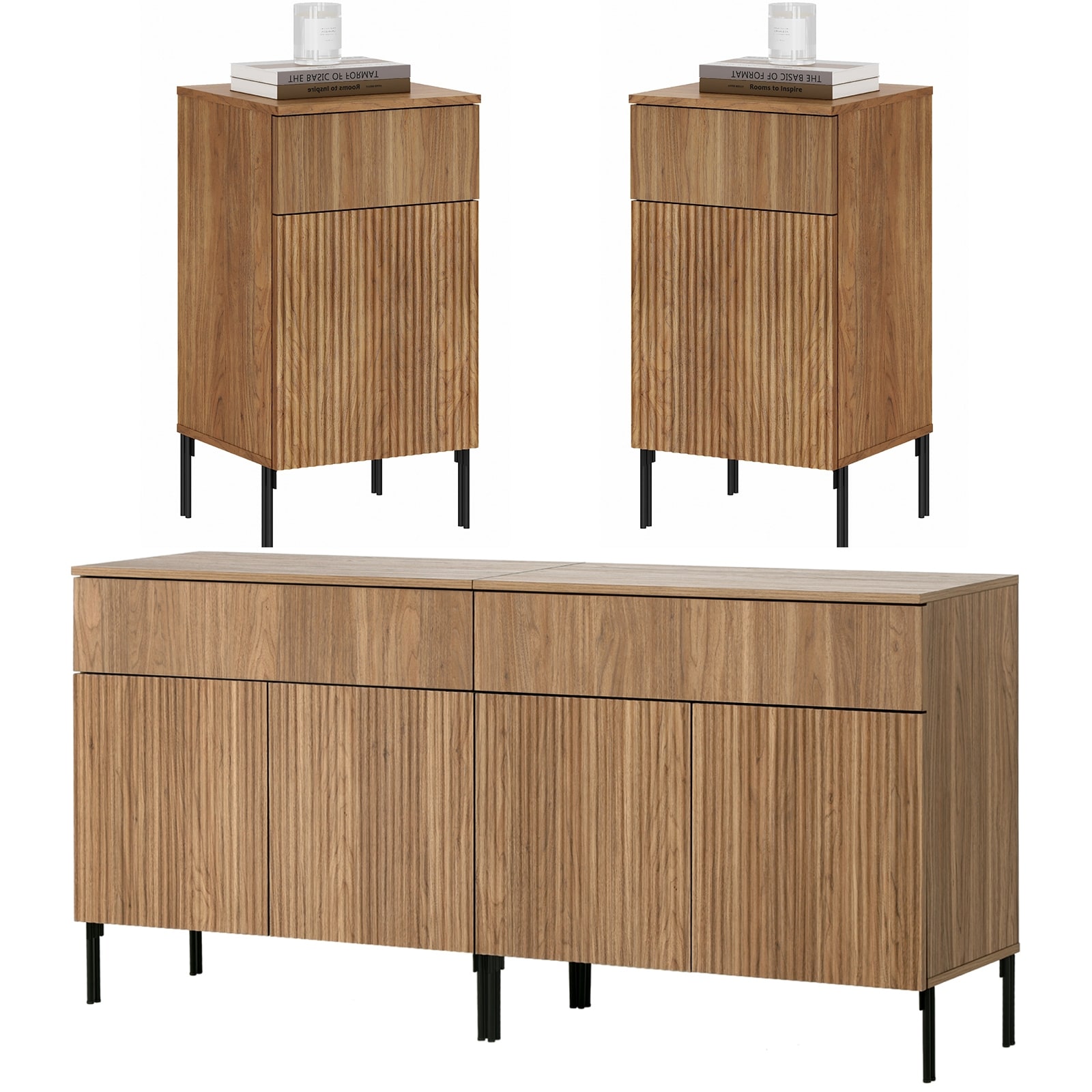 4 Pcs Bedroom Set,Reeded Dresser and Nightstand Sets for Bedroom, Night Stand of 2 with Charging Station