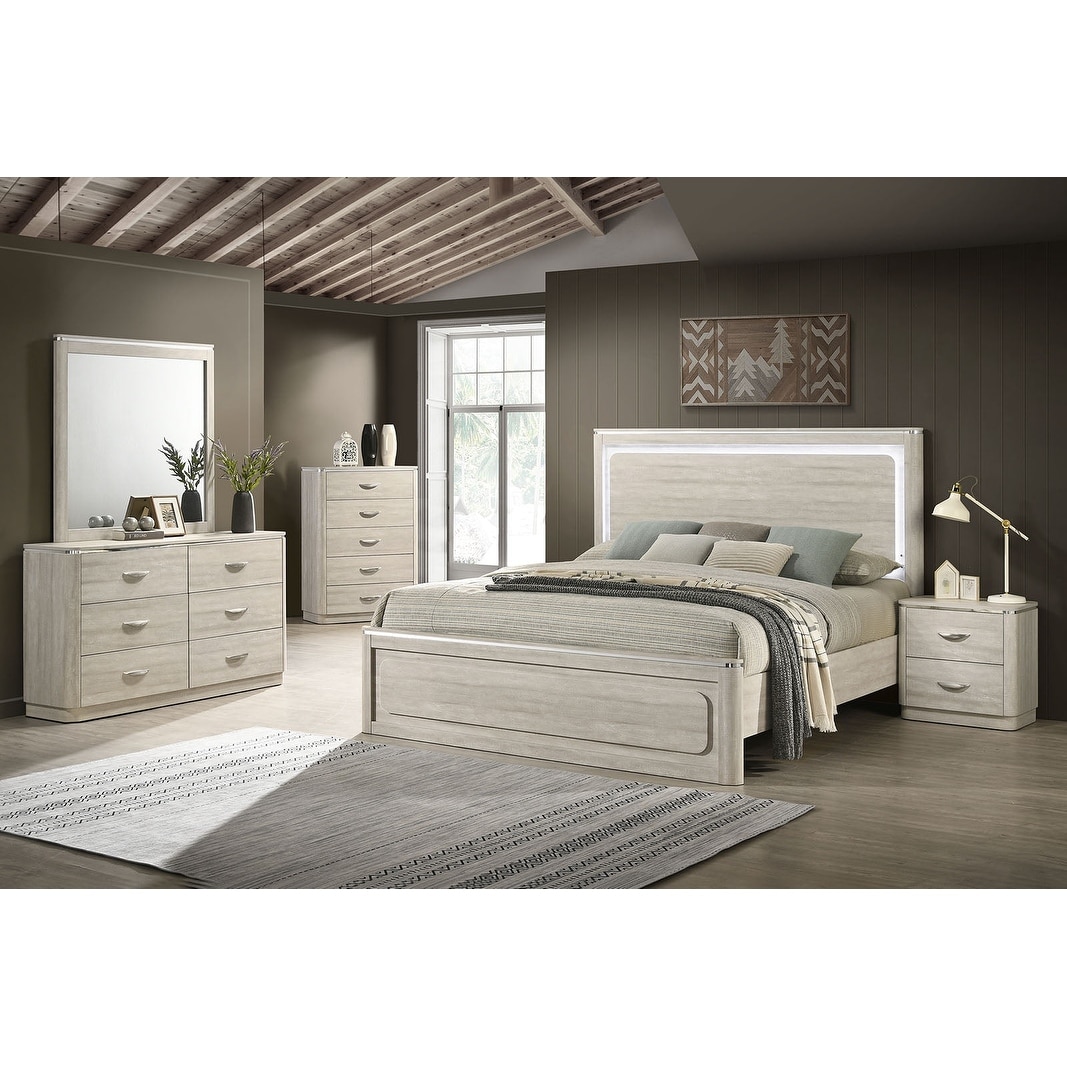 Dusty Gray Contemporary Bedroom Furniture Set with LED Headboard