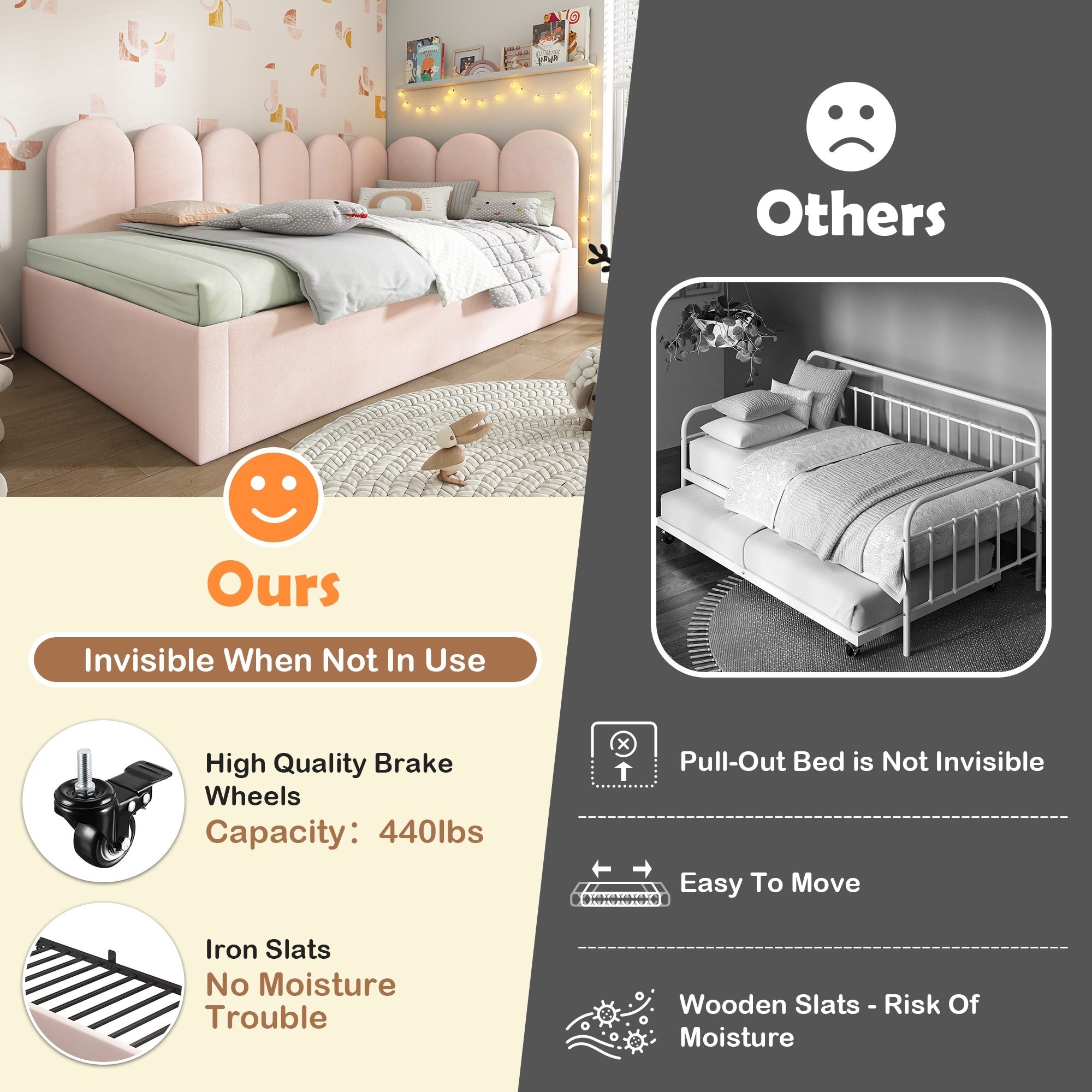 Upholstered Bed Daybed With Pull-Out Bed