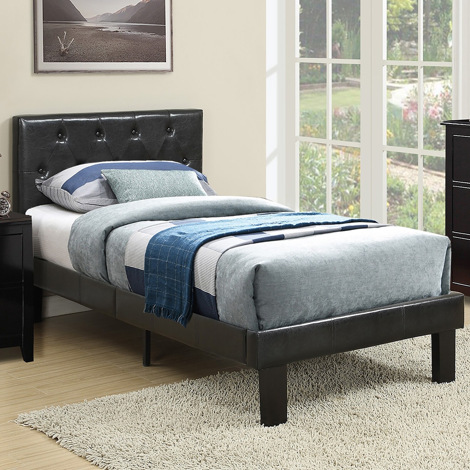 Faux Leather Upholstered Bed with Button Tufted Headboard