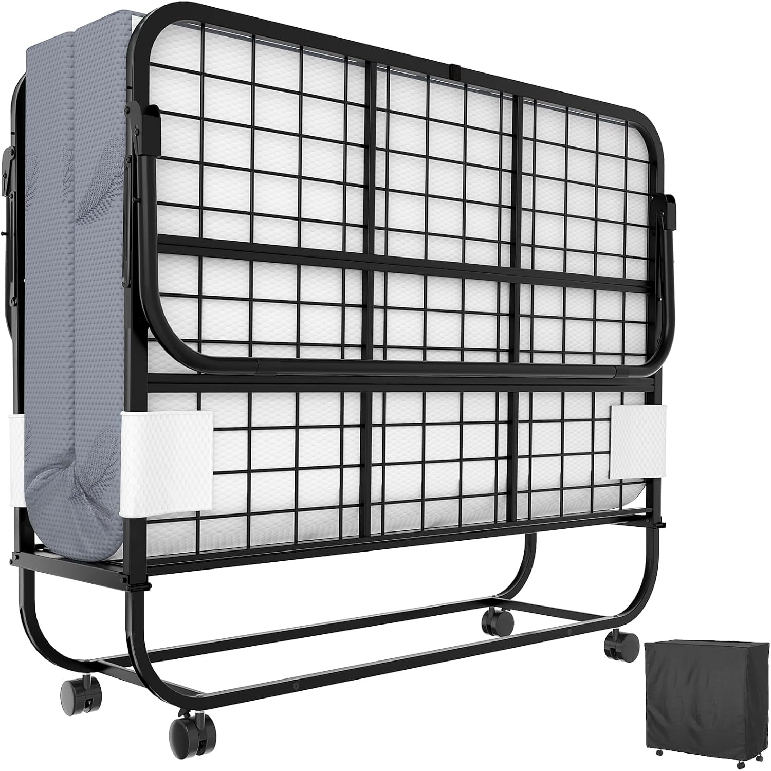 Extra Wide Folding Bed with Memory Foam Mattress, Sturdy Steel Frame, and Storage Cover, 75x46 Inches
