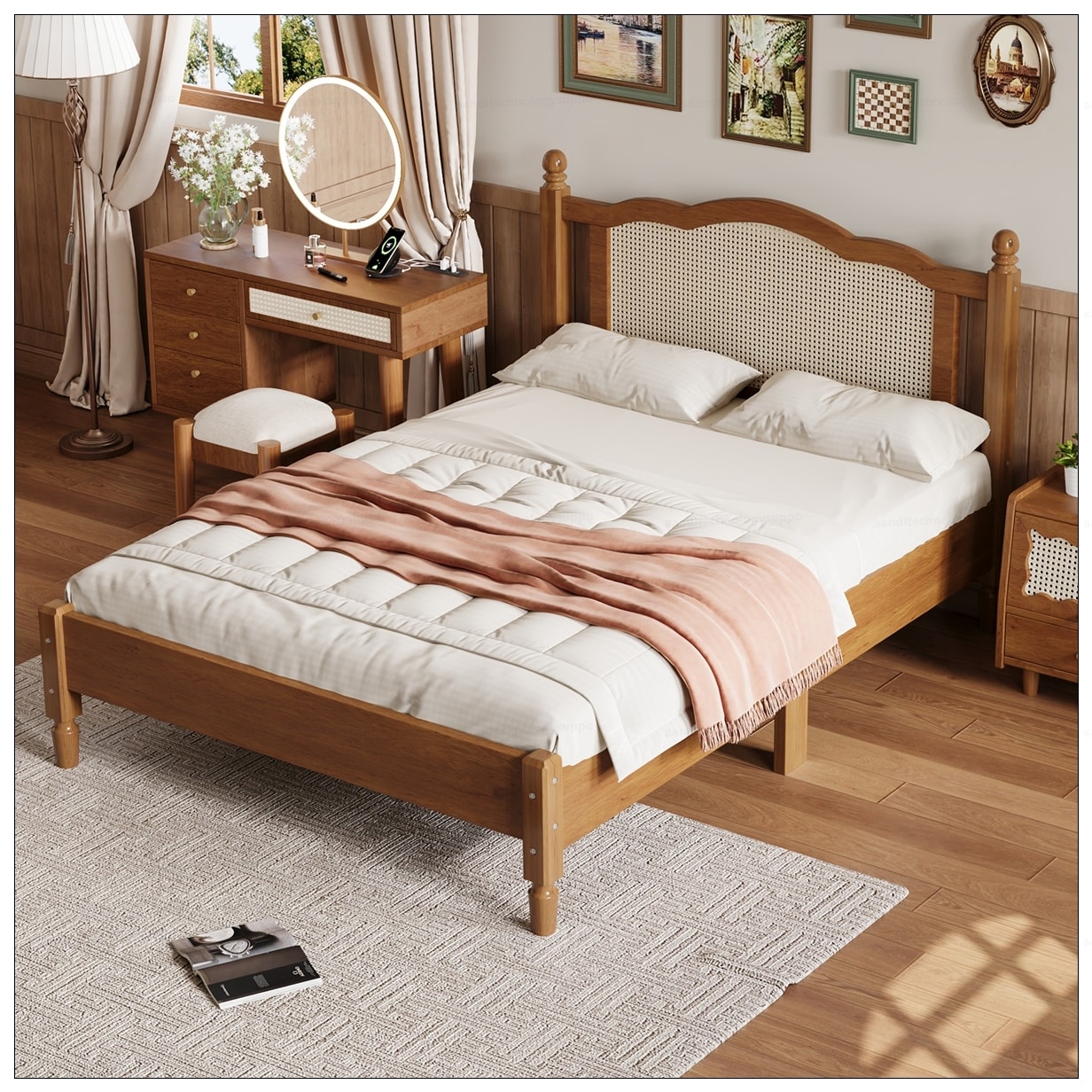 Queen Size Wooden Curved Lines Bed Frame with Sturdy and Stylish Walnut Finish