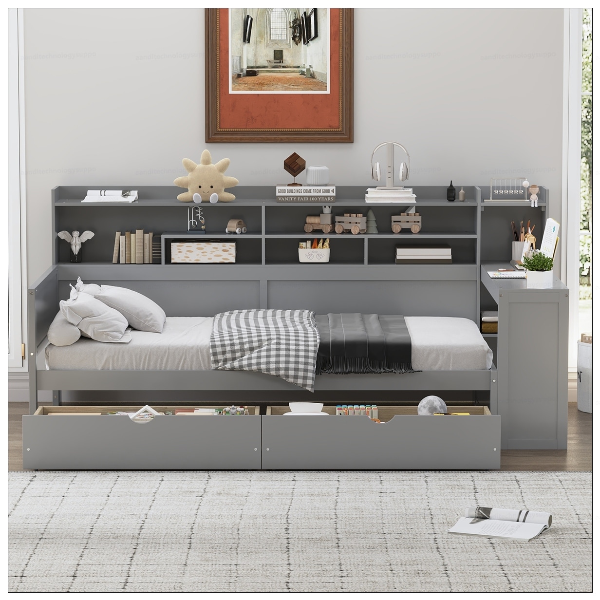 Twin Over Twin Solid Wood Bunk Bed with Twin Trundle and 3 Drawers