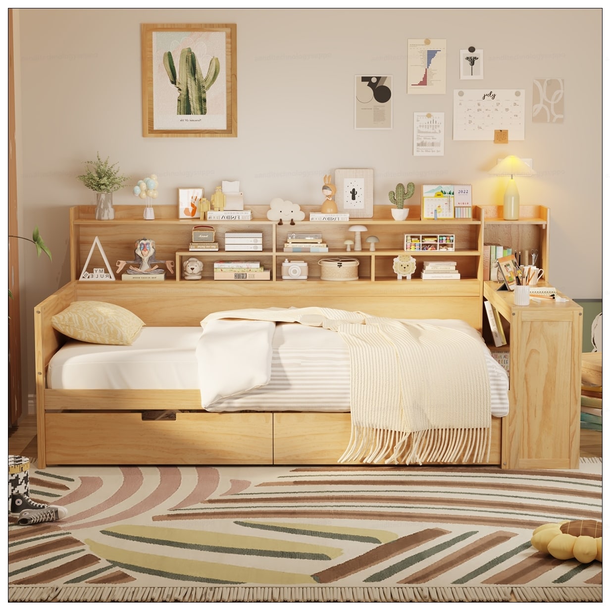Twin Size Floor Bed with Fence without Door, Rubber Wood Floor Bed with Safety Guardrails