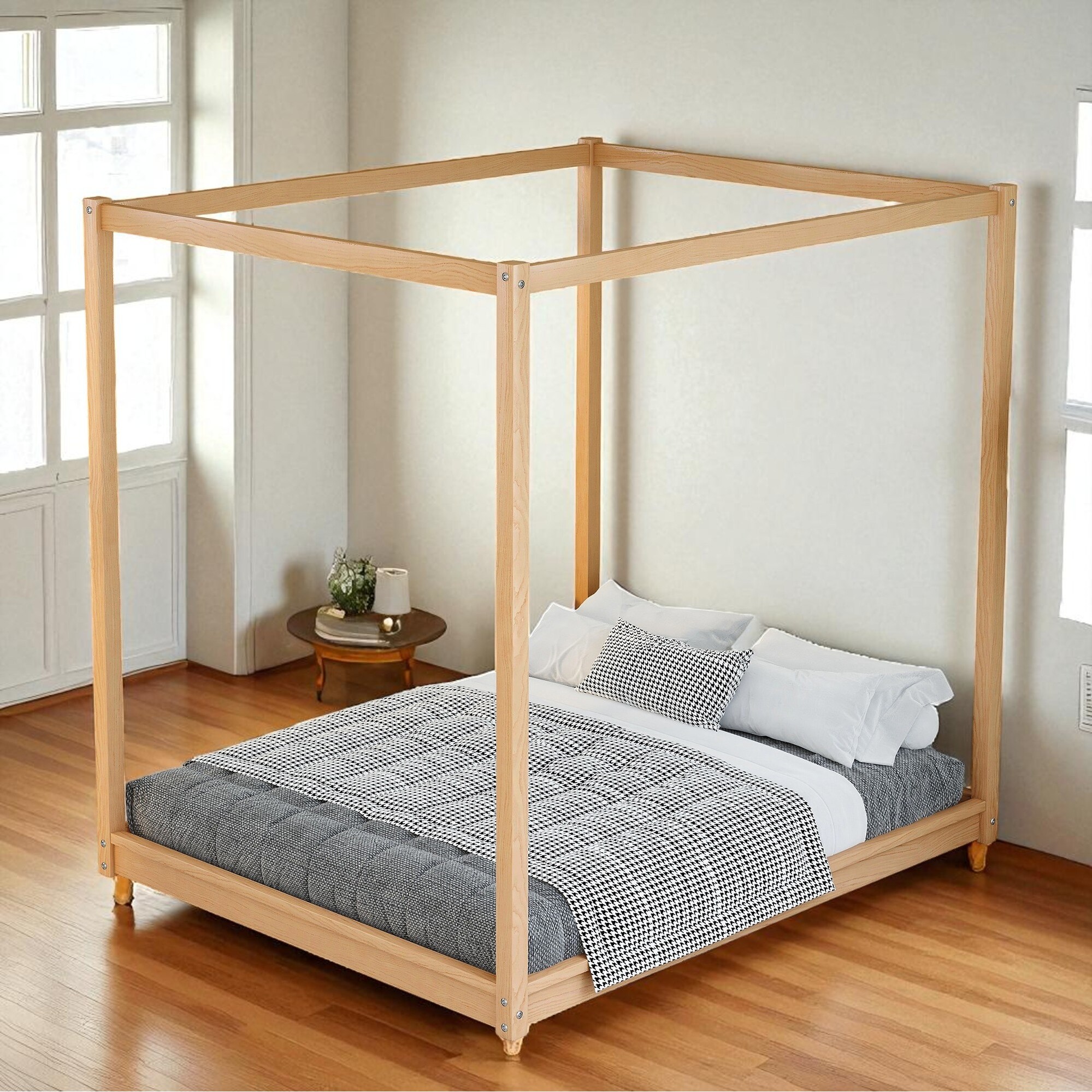 Queen Size Canopy Platform Bed Frame with Slats and Support Legs, No Box Spring Needed