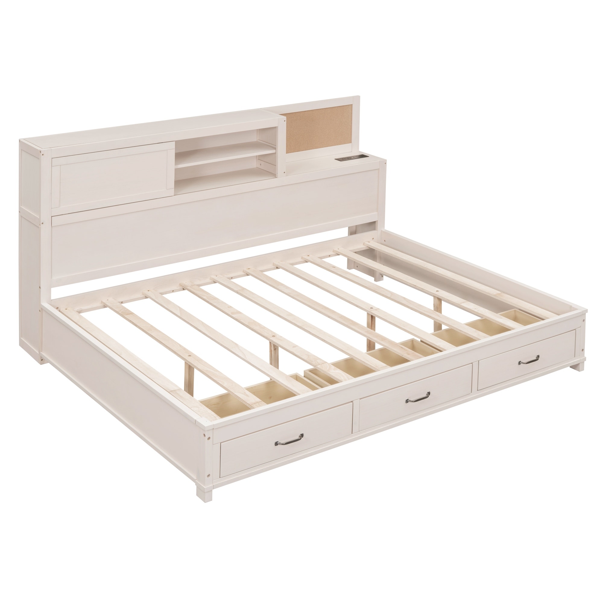 King Size Solid Wood Eastern Platform Bed with Storage Drawers and Panel Headboard