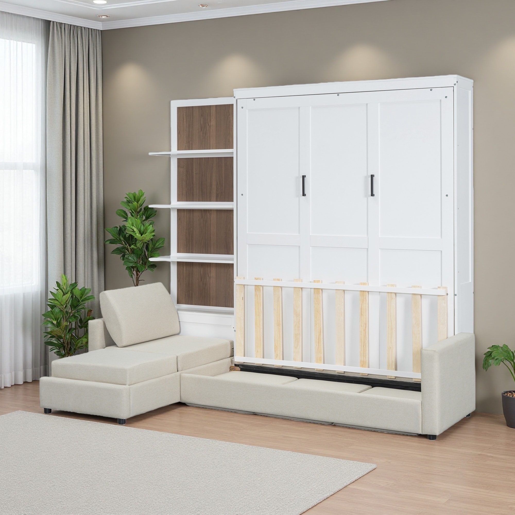 Queen Size Murphy Bed Wall Bed with Sofa and Shelves - Multifunctional Design with Convenient Storage and Superior Quality