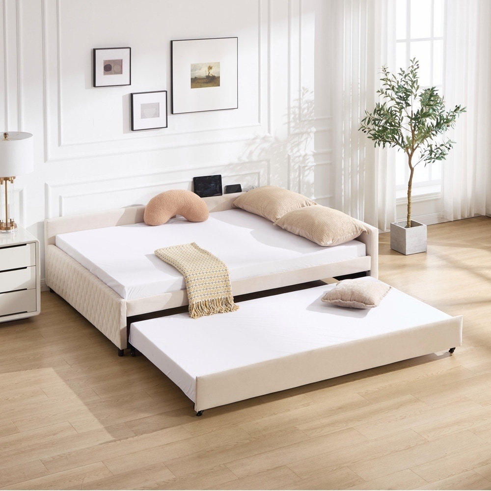 Upholstered Bed with Upholstered Wingback Headboard,Wood Base