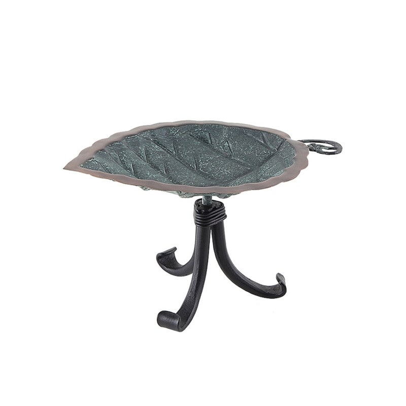 Autumnal Leaf Metal Bird Bath - Green Patina - 11.75 in