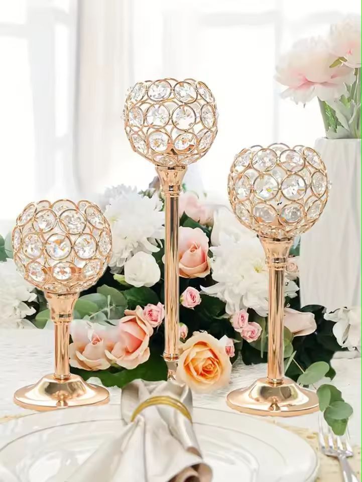 Luxora Golden Crystal Candle Holder Elegant Tealight & Centerpiece Stand (Set Of 1 3) m