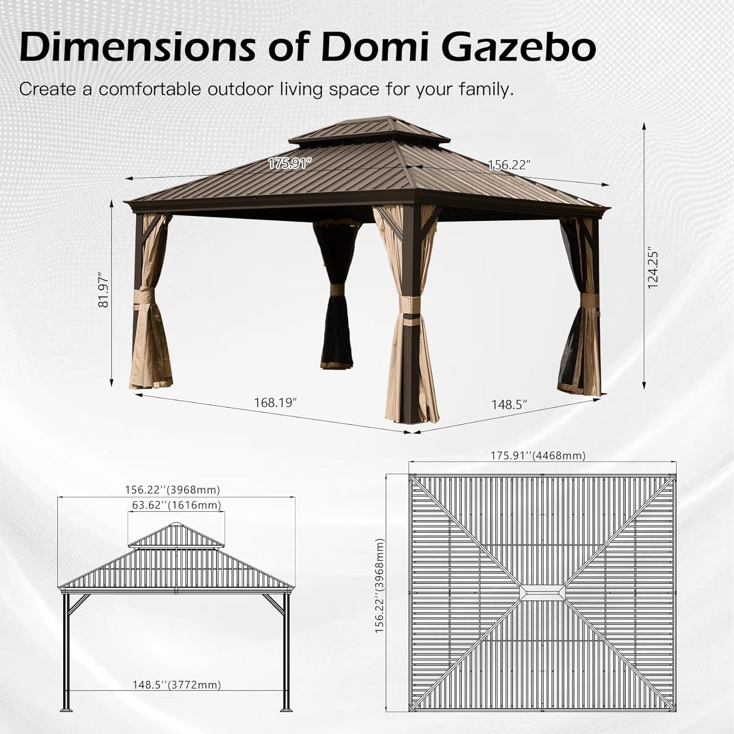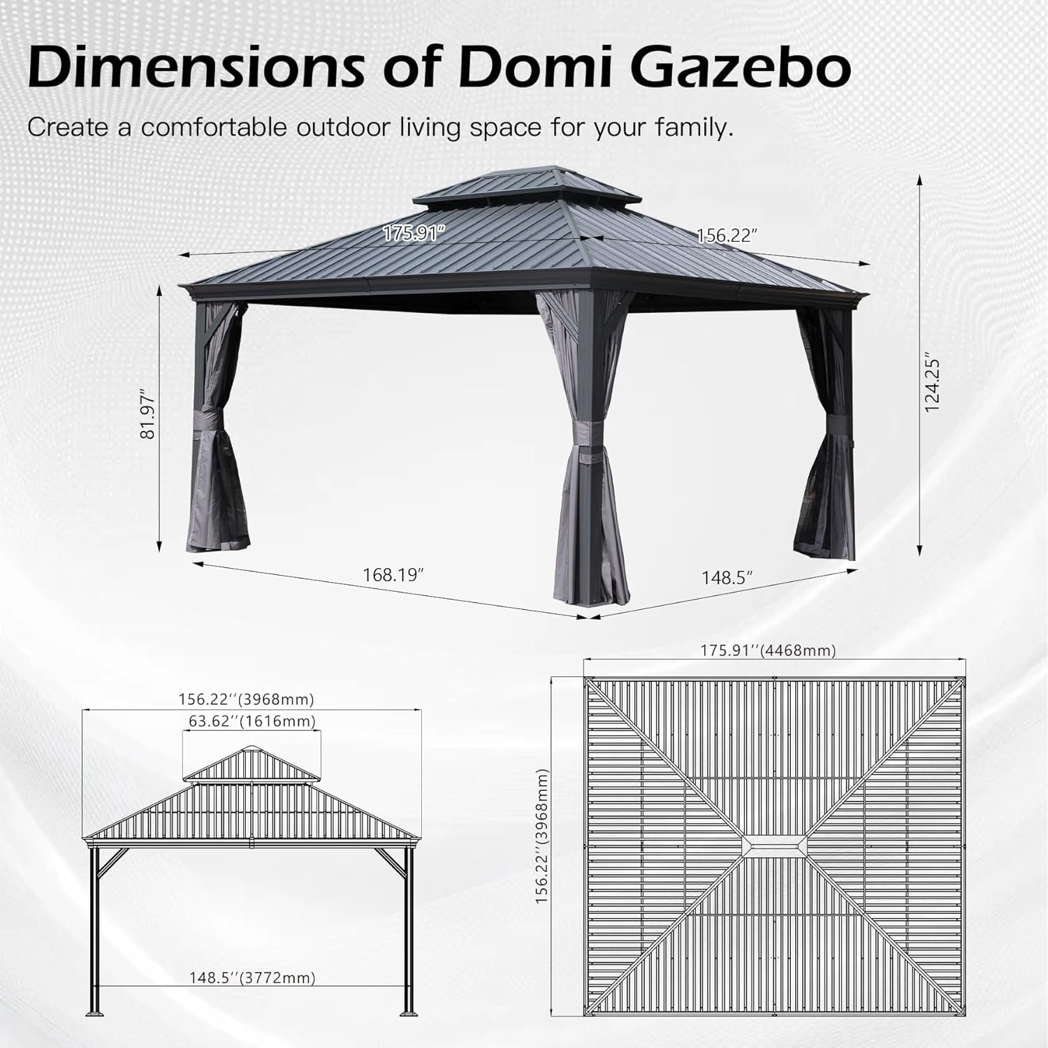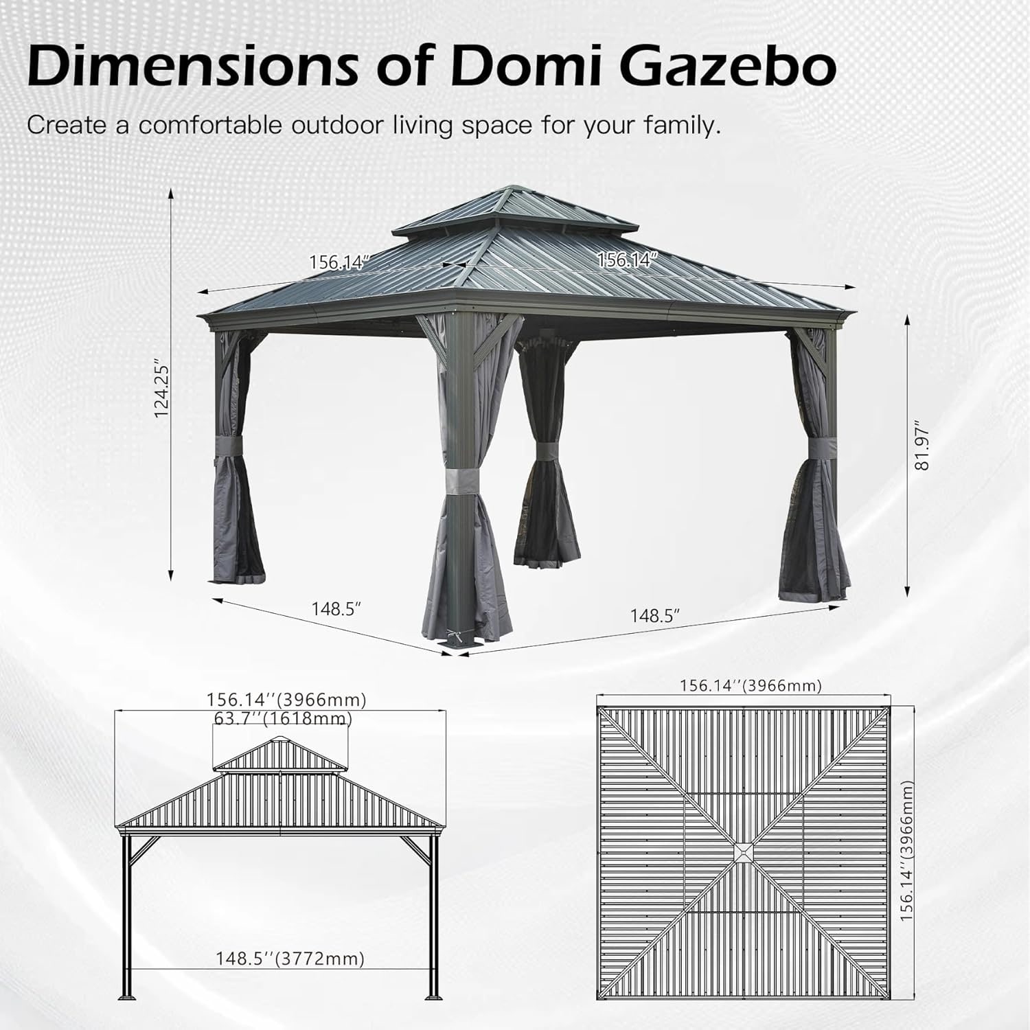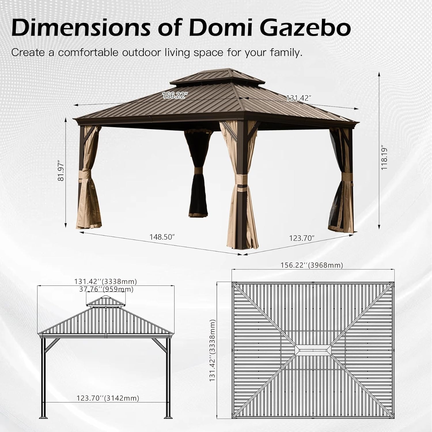 Upgraded Hardtop Metal Gazebo With Drainage System And Dual-Layer Galvanized Steel Roof