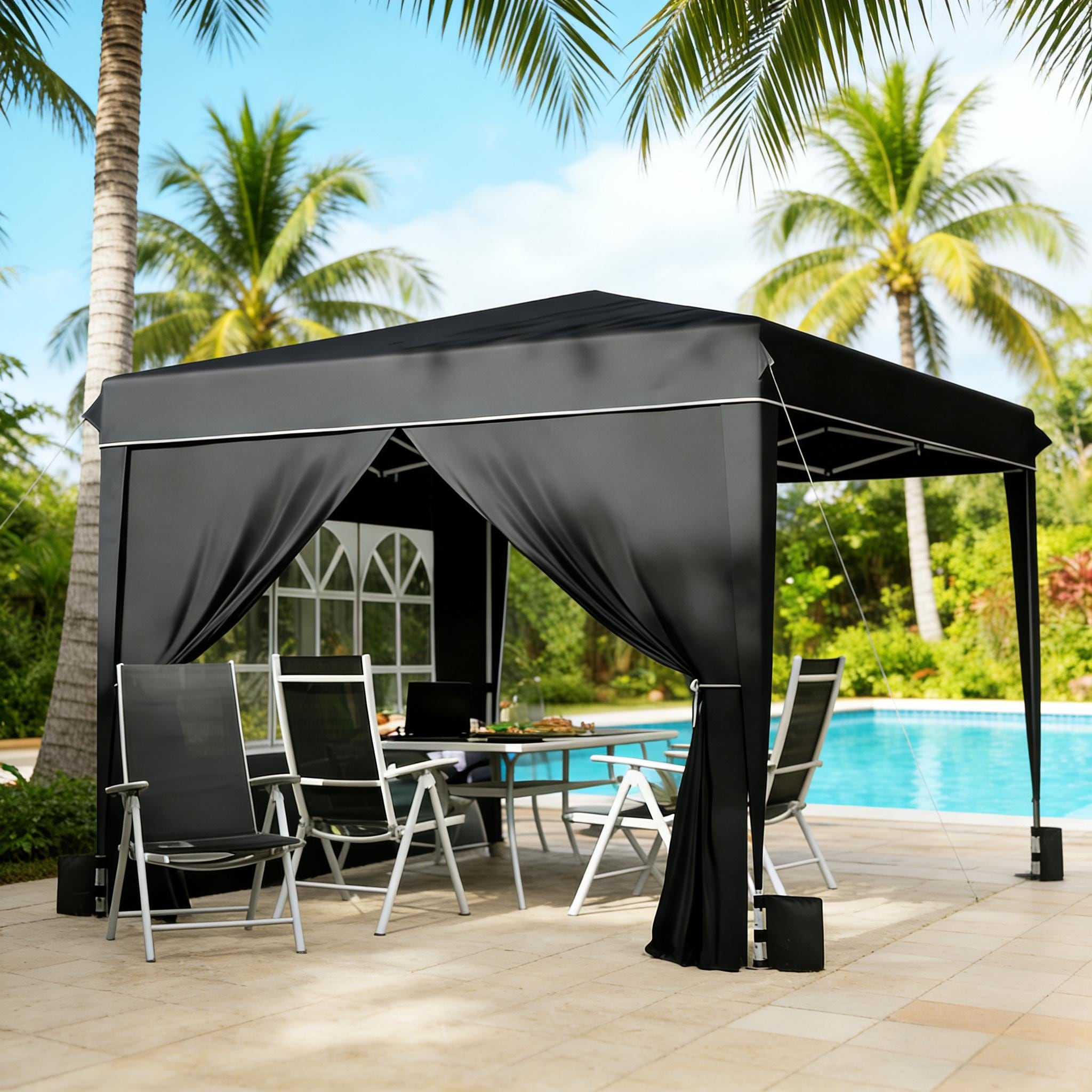 10'x10' Folding Canopy, 4 Removable Sidewalls, UPF 50+, Portable EZ Pop Up Gazebo, 4 Weight Bags & Carry Bag