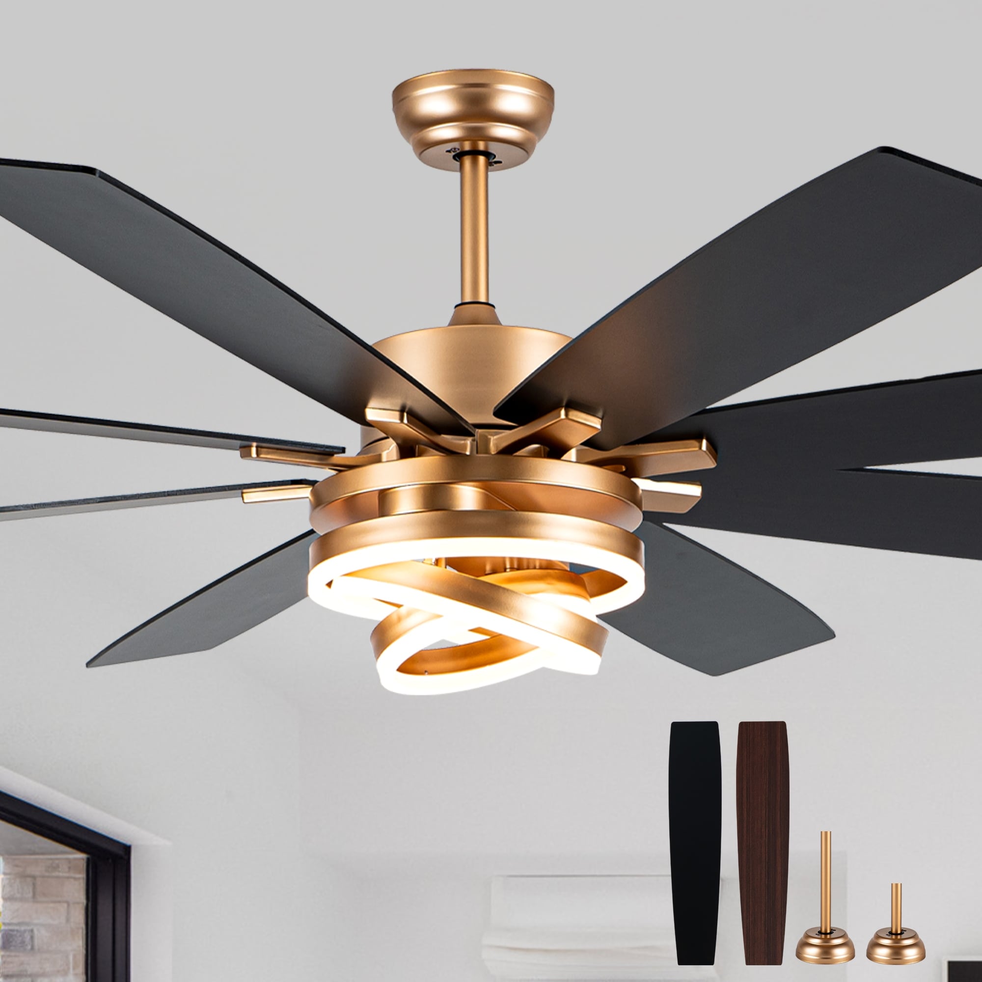 Cusp Barn 52"/72" Modern Large Dimmable LED Ceiling Fan with Lights and Remote, Reversible 8-Blade DC Motor DIY Shape Chandelier