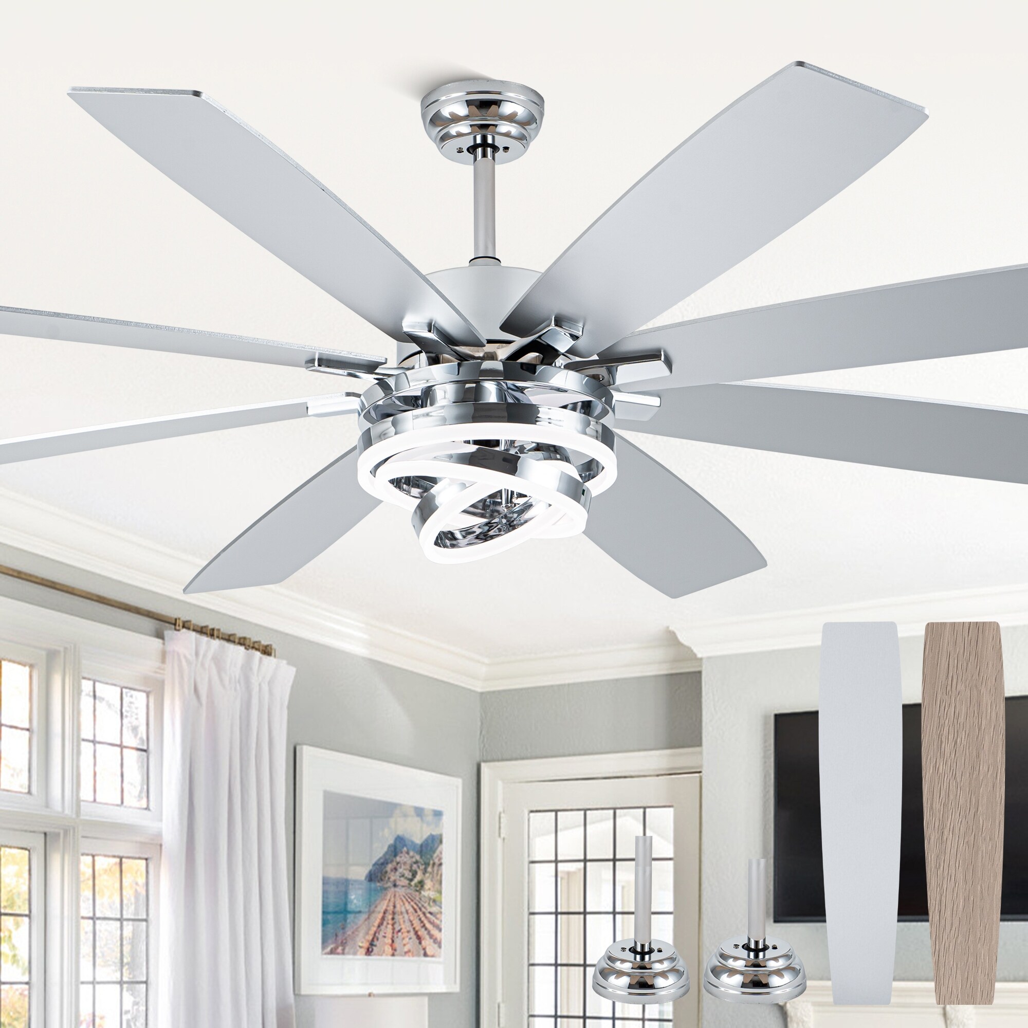 Cusp Barn 52"/72" Modern Large Dimmable LED Ceiling Fan with Lights and Remote, Reversible 8-Blade DC Motor DIY Shape Chandelier