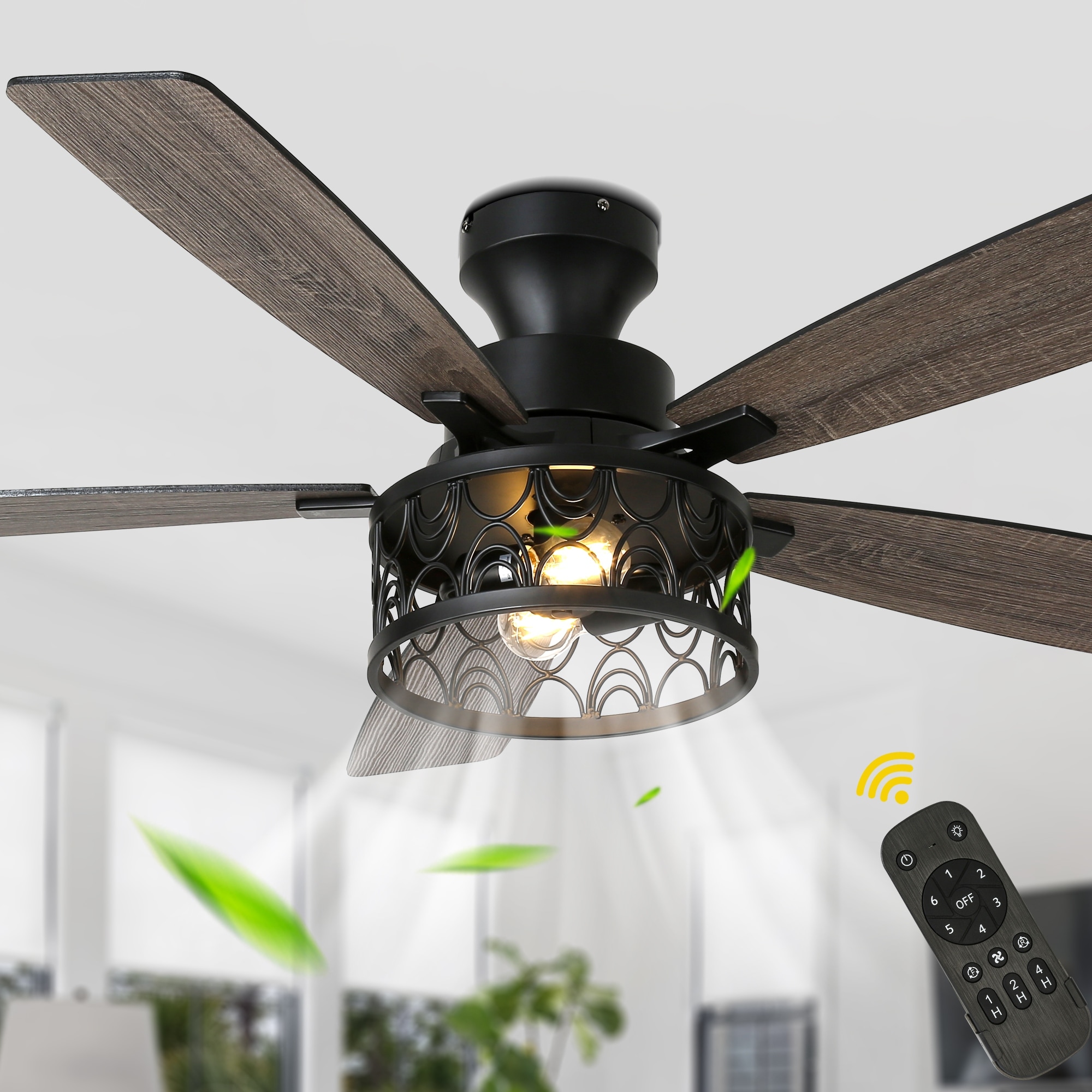 Bella Depot 52" Modern Ceiling Fan with Remote and Dimmble LED Light, DIY Light Shade 6-Speed Reversible Fanlight