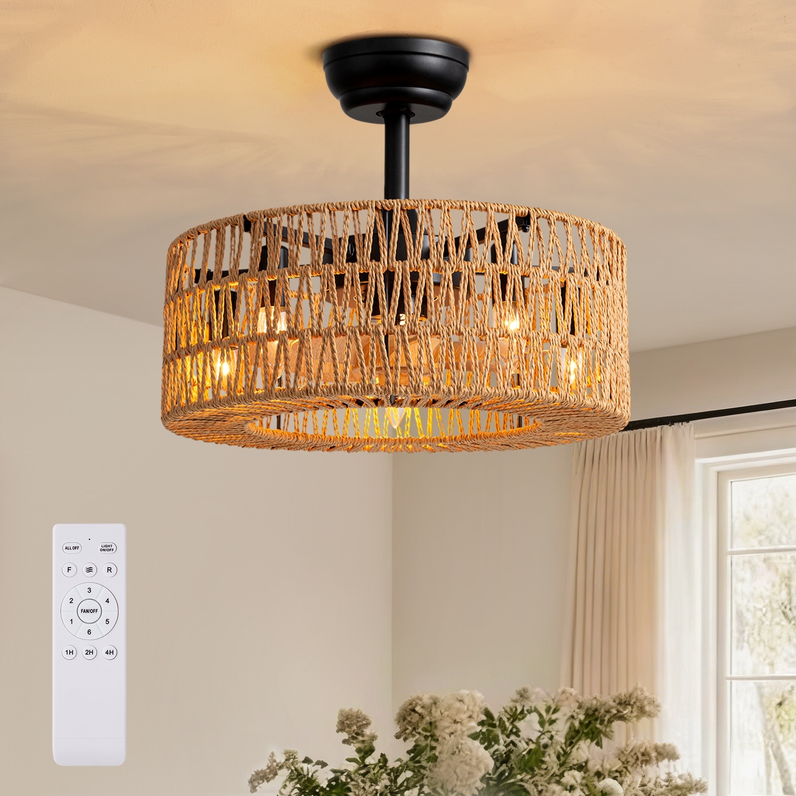 20 inch Boho Rattan Caged Ceiling Fan With Lights And Remote