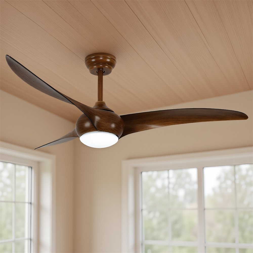 Indoor/Outdoor LED Ceiling Fan Lights with Remote Control, 52 Inch Reversible Ceiling Fans with Light and 3 Solid Wood Blades
